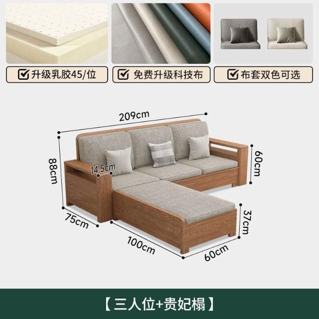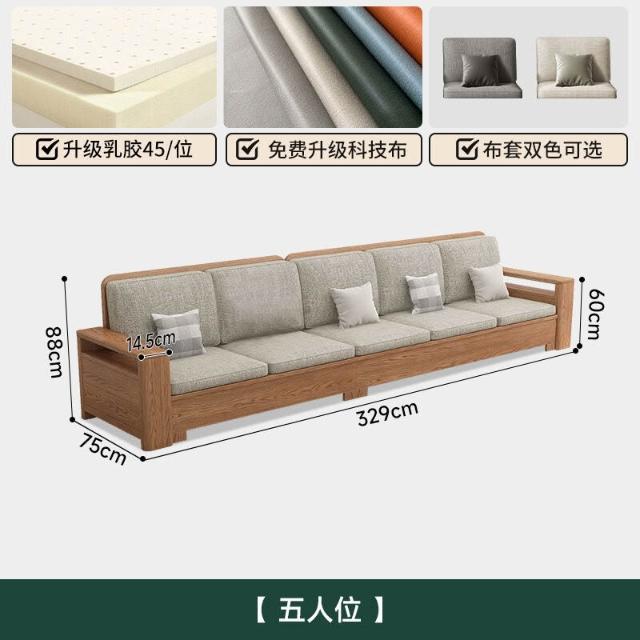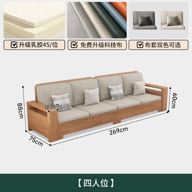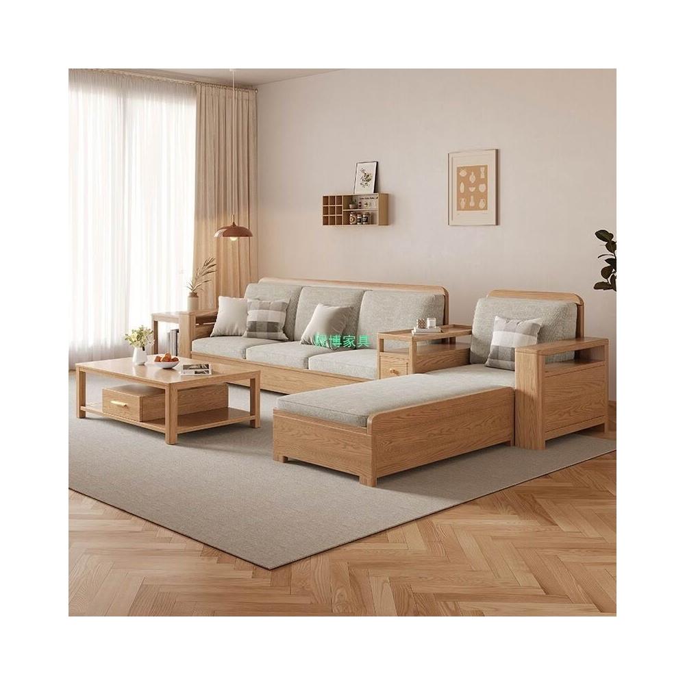 北歐白蠟木實木沙發組合布藝沙發現代簡約大小戶型客廳原木色家具