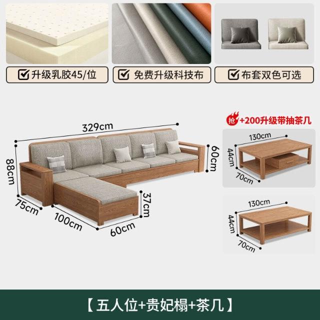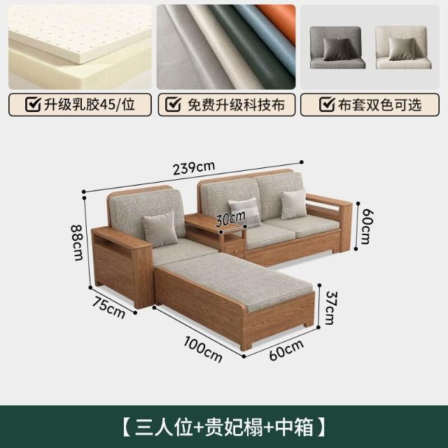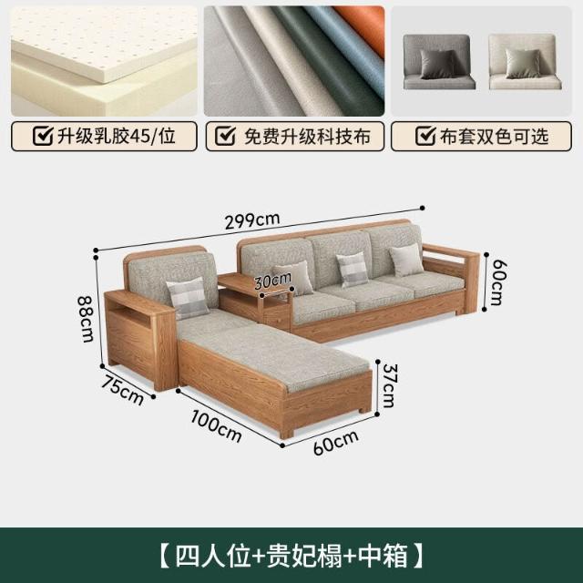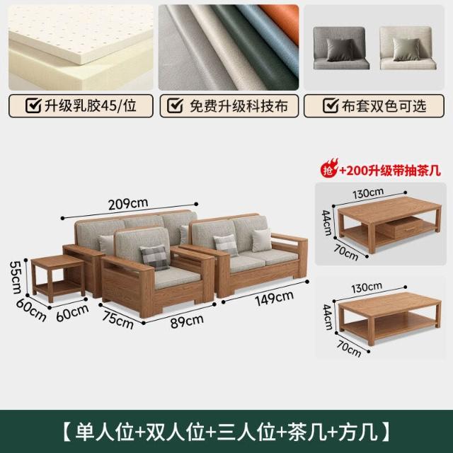 北歐白蠟木實木沙發組合布藝沙發現代簡約大小戶型客廳原木色家具