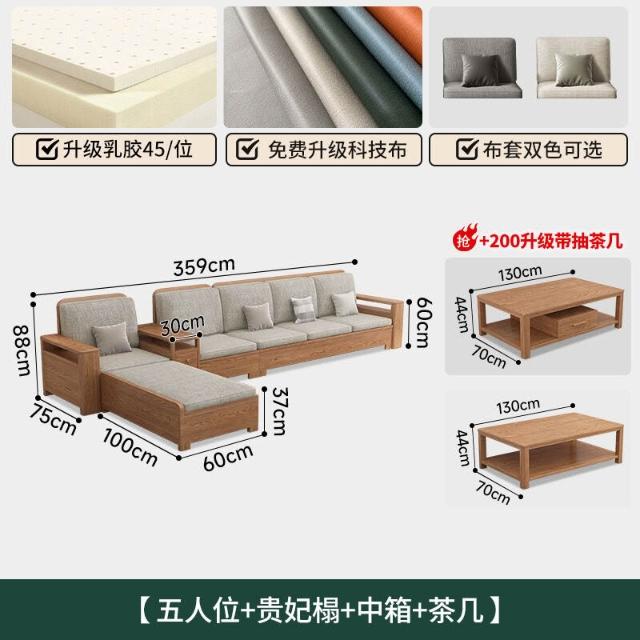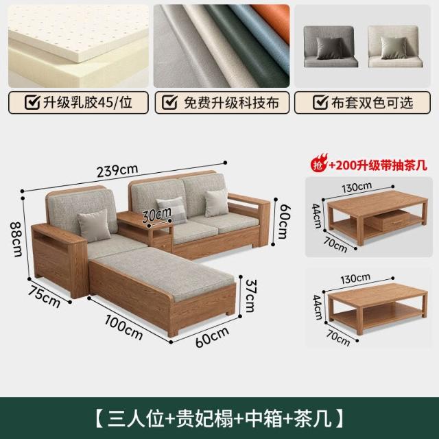 北歐白蠟木實木沙發組合布藝沙發現代簡約大小戶型客廳原木色家具
