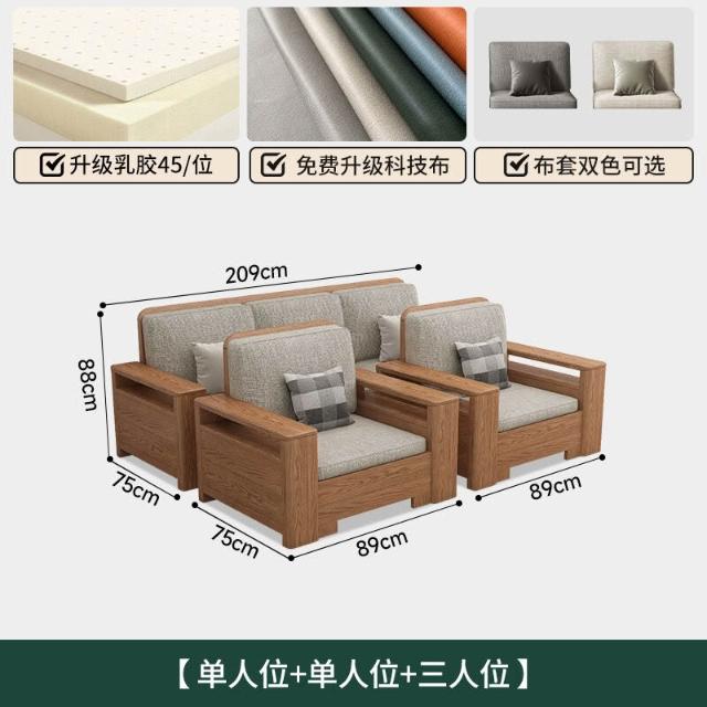 北歐白蠟木實木沙發組合布藝沙發現代簡約大小戶型客廳原木色家具
