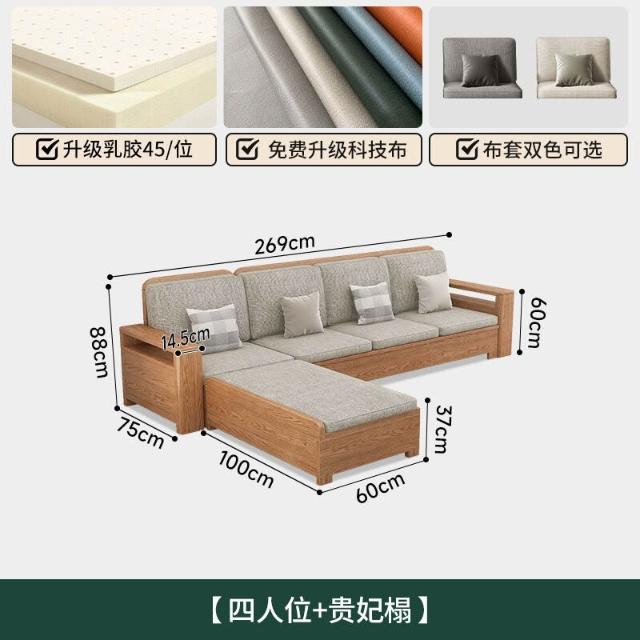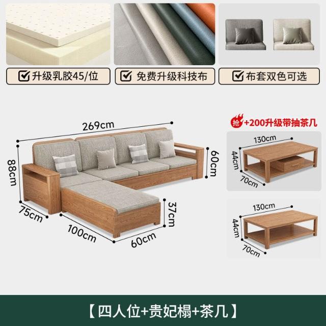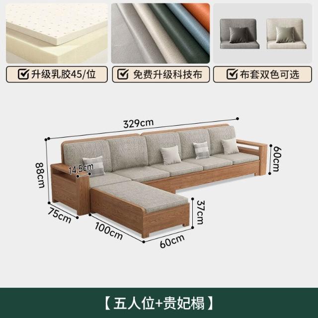 北歐白蠟木實木沙發組合布藝沙發現代簡約大小戶型客廳原木色家具