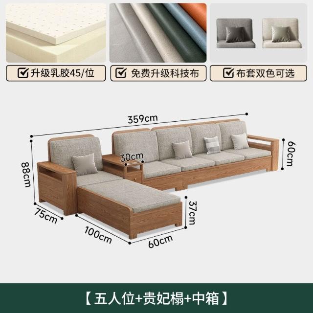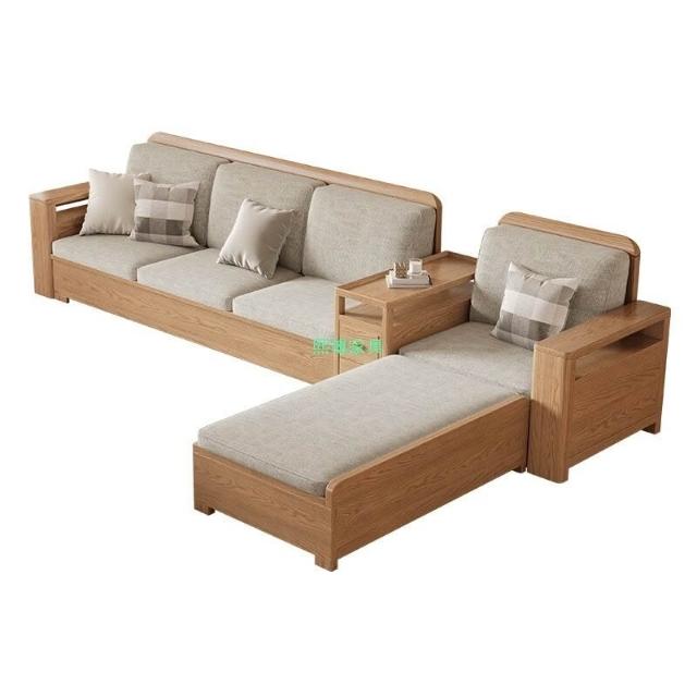 北歐白蠟木實木沙發組合布藝沙發現代簡約大小戶型客廳原木色家具