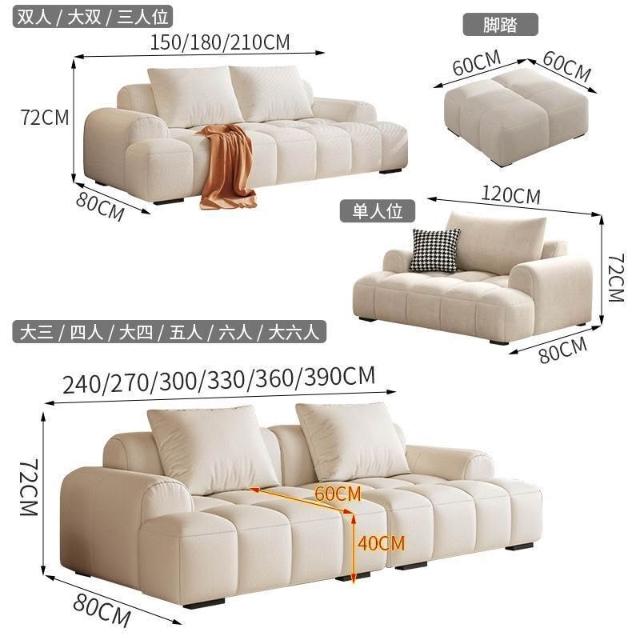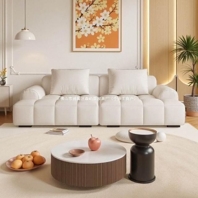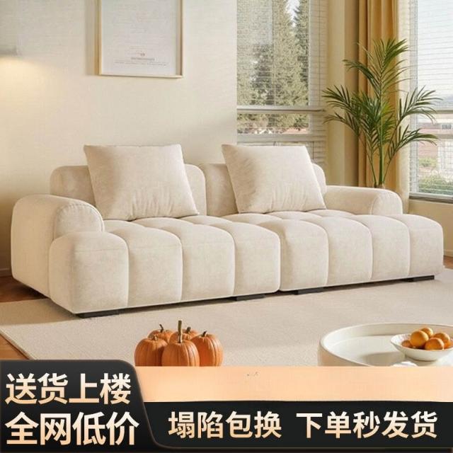 法式田園沙發小戶型奶油風泡芙沙發鋼琴鍵勞倫斯直排懶人沙發家用