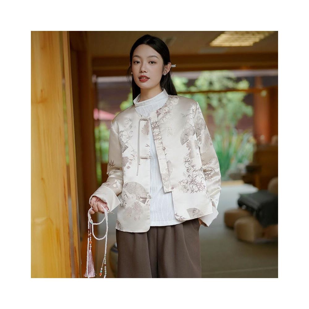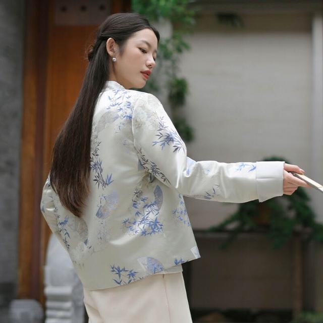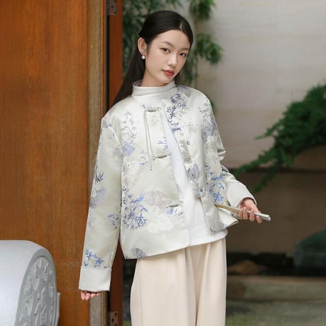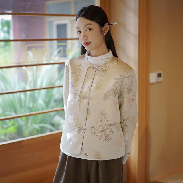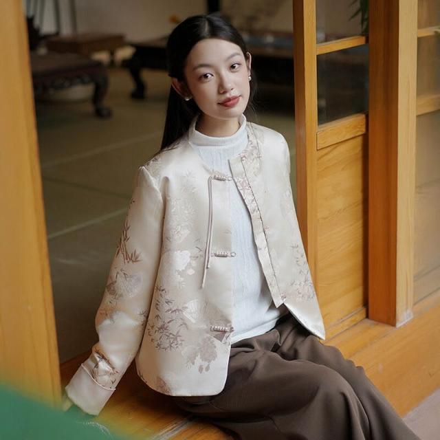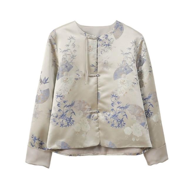 含稅 新中式女裝2024秋季新款緞面外套女輕國風宋錦提花上衣