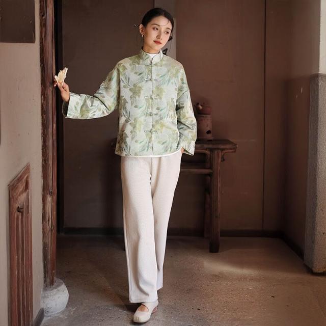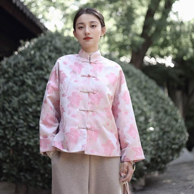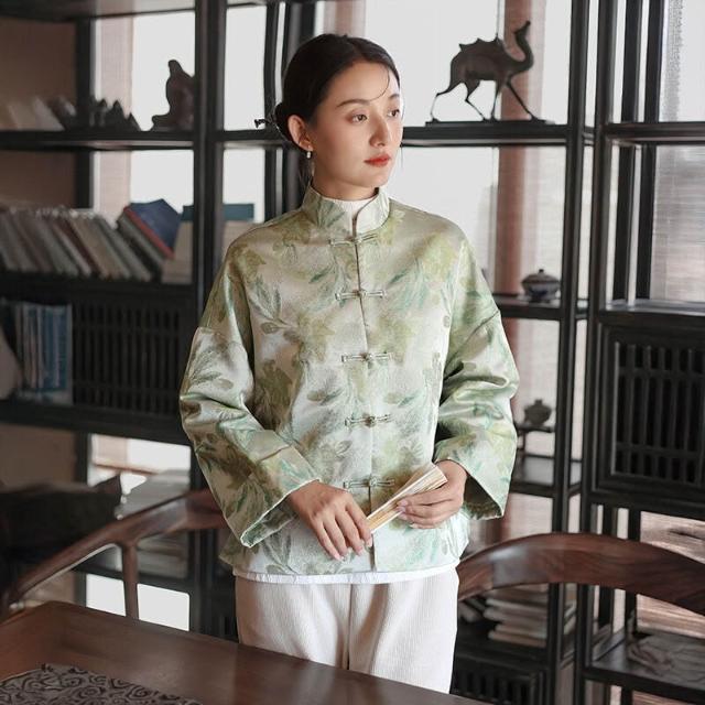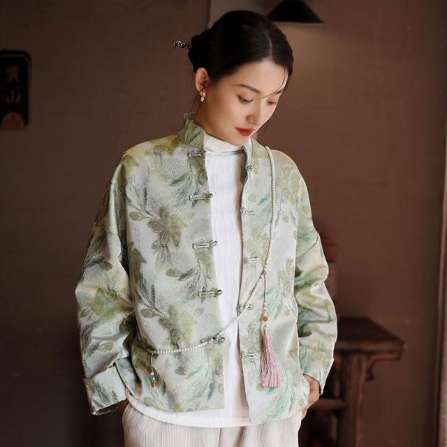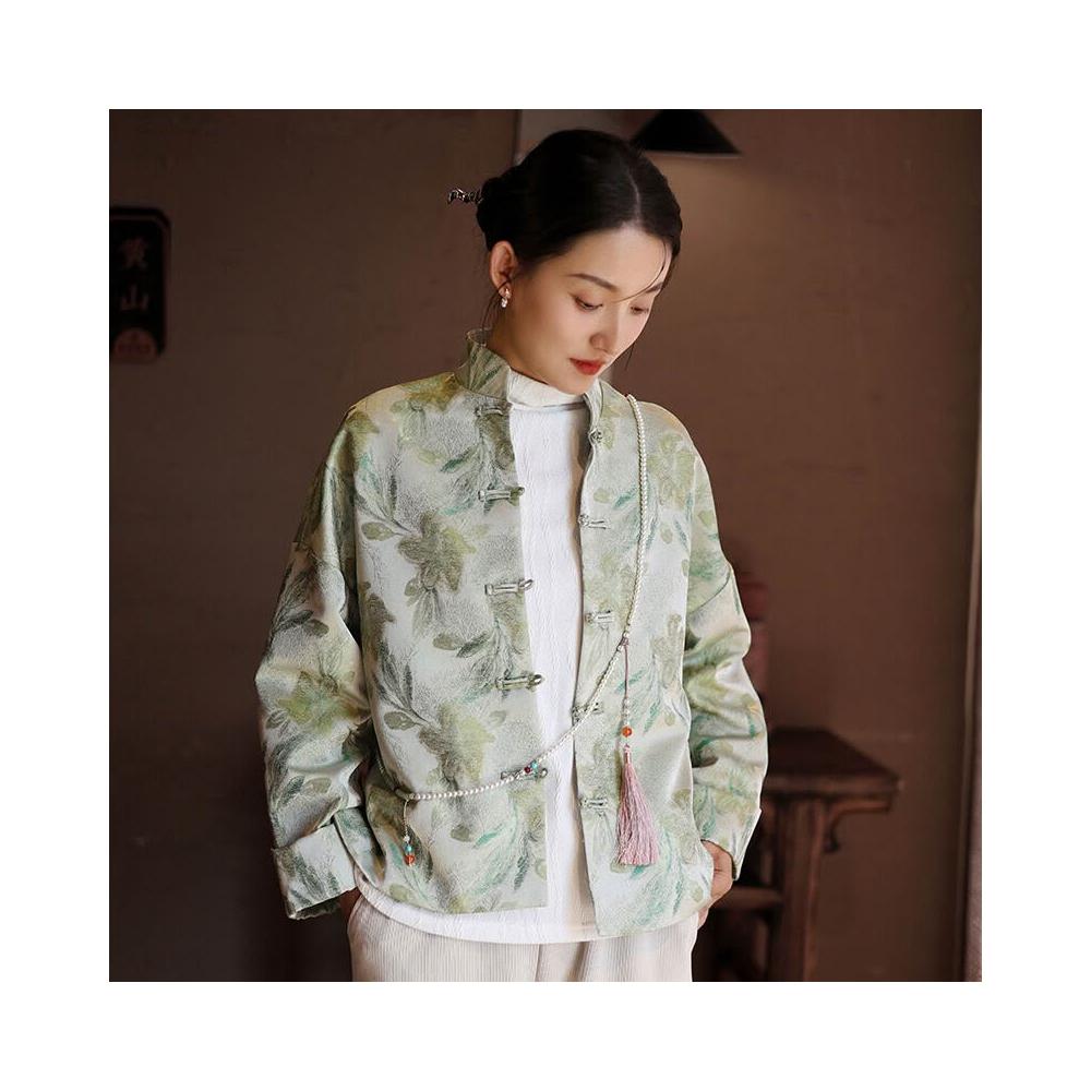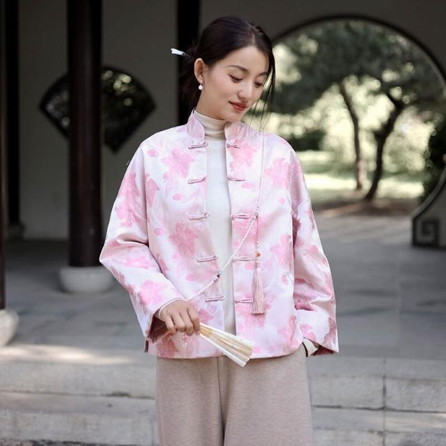 含稅 新中式女裝2025秋季新款外套女中國風緞面上衣提花外套