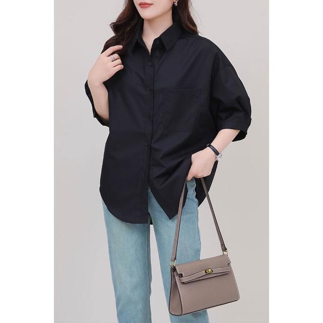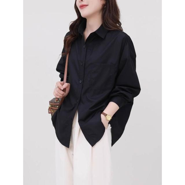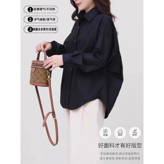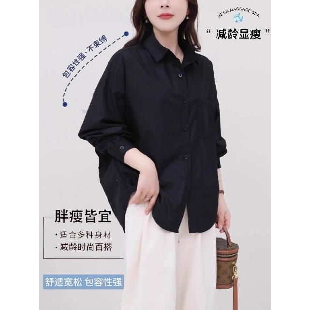 含稅 高級感黑色襯衫女士氣質上衣2025早秋裝新款寬松休閑長袖襯衣