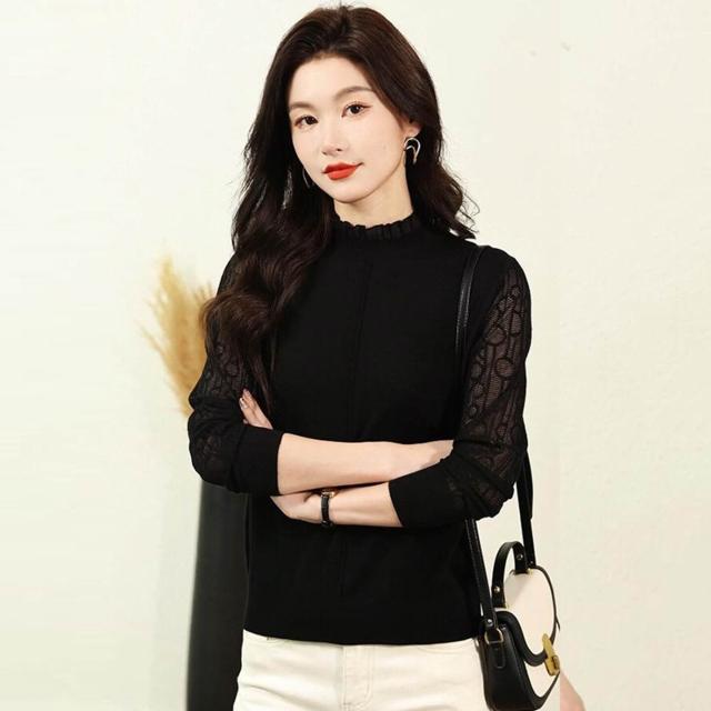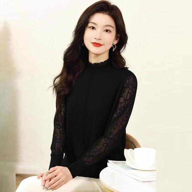 含稅 高級感時尚精品羊毛針織衫上衣女秋冬新款親膚顯瘦百搭镂空打底衫