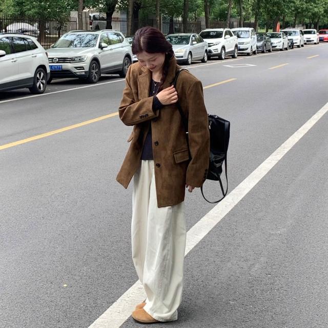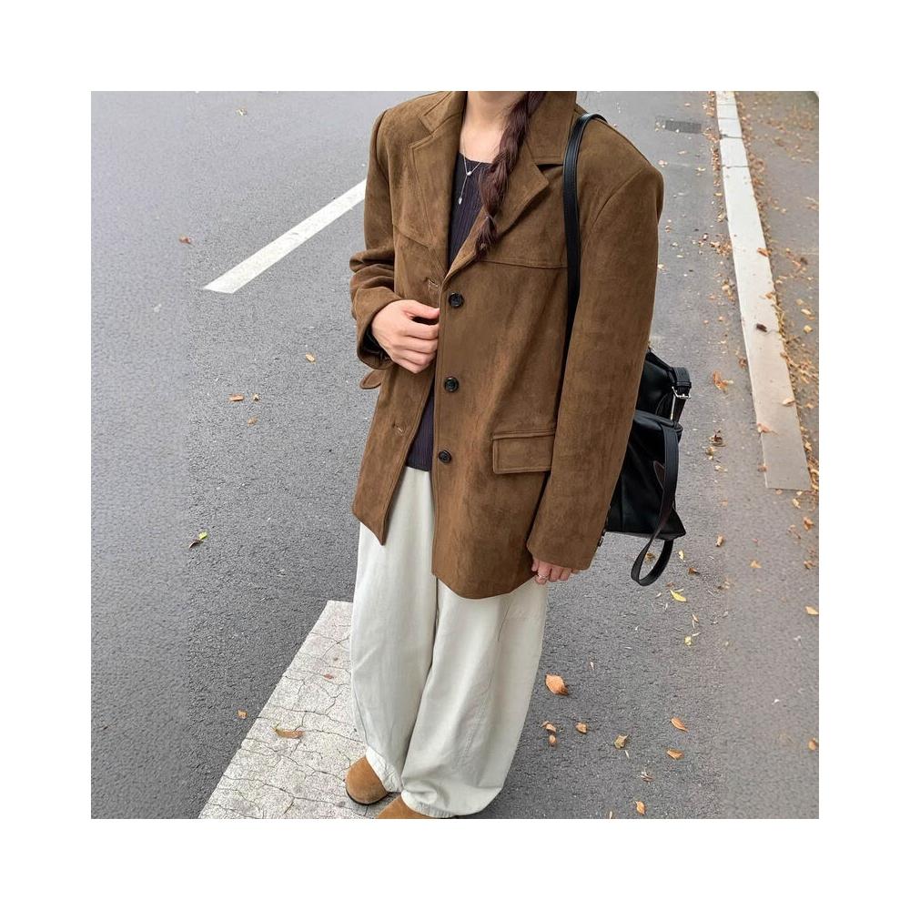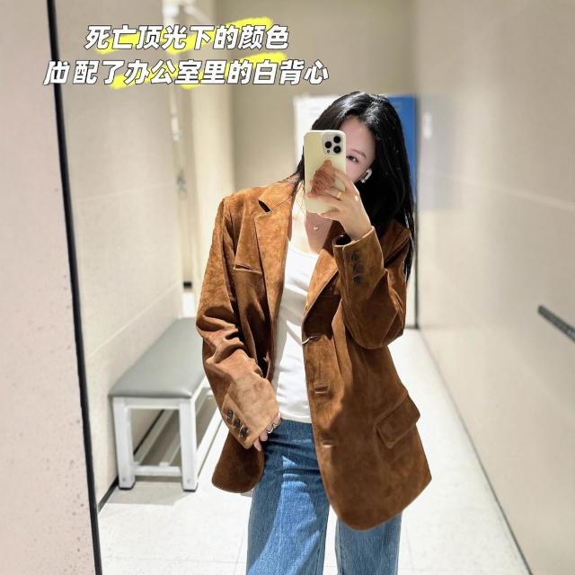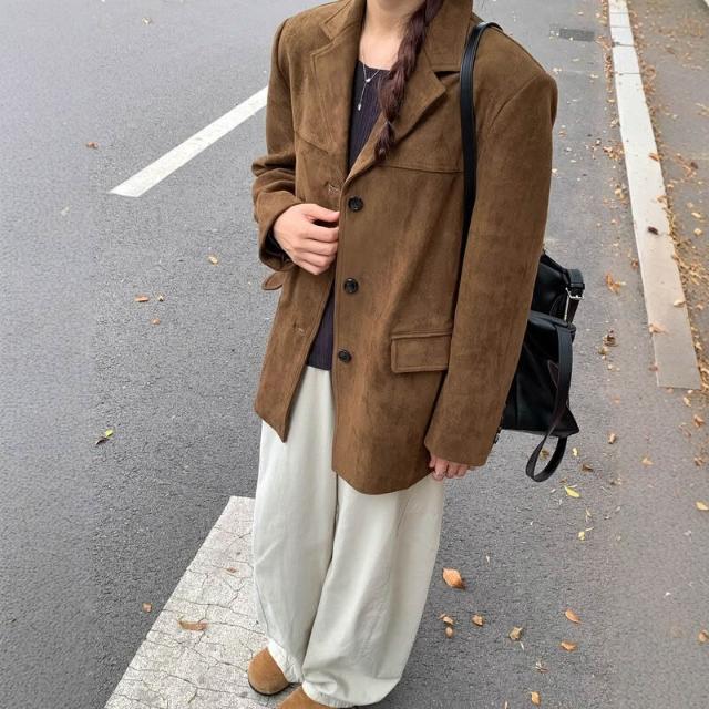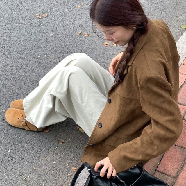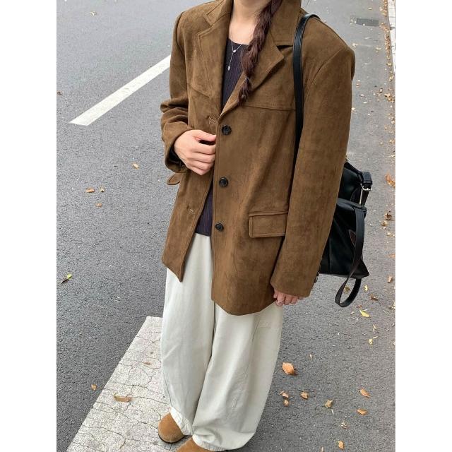 含稅 超好看炸街休閑西裝外套女2025新款棕色麂皮絨氣質名媛感西服百搭