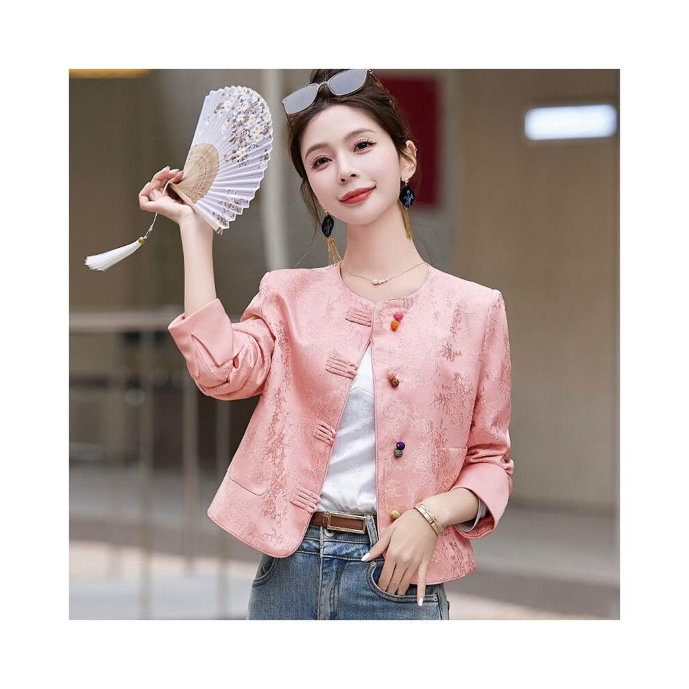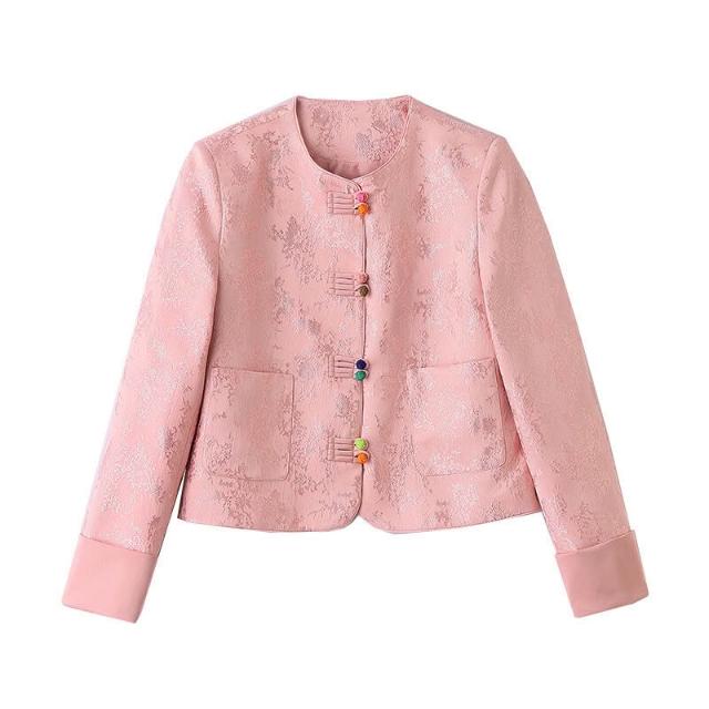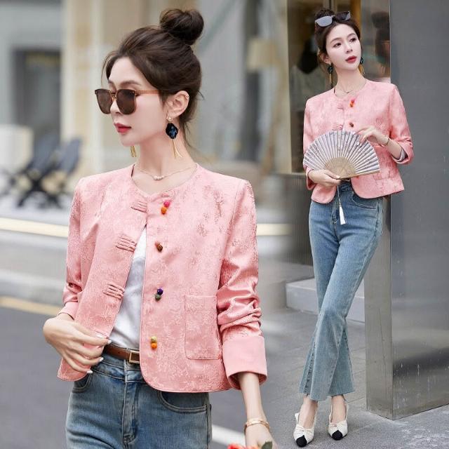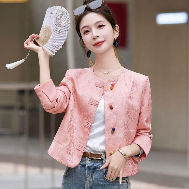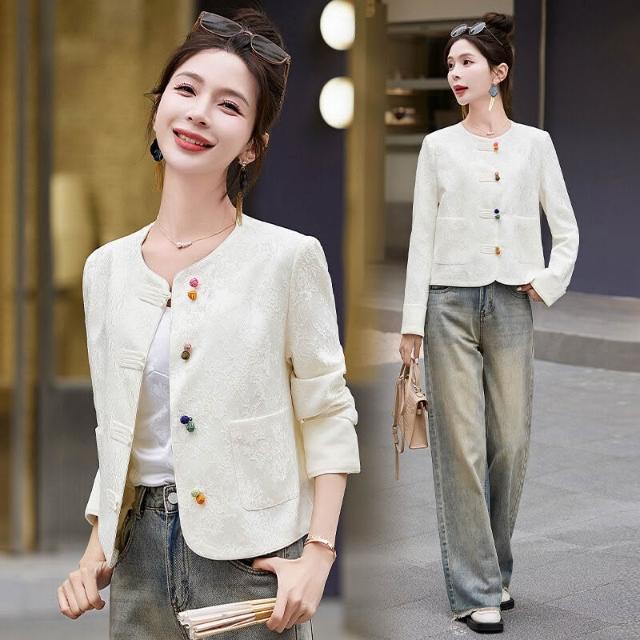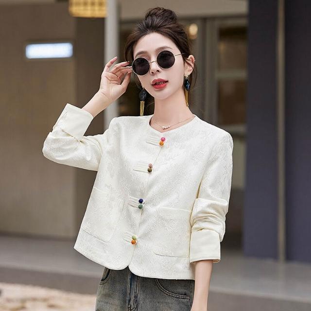 新中式國風外套女2025春秋刺繡提花小香風氣質短款西裝上衣
