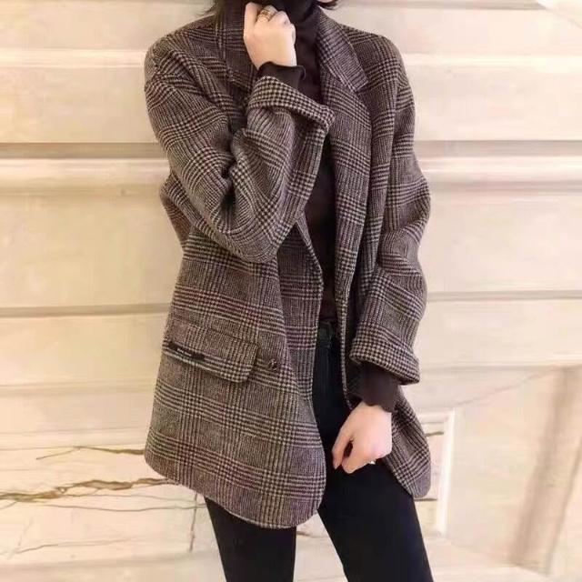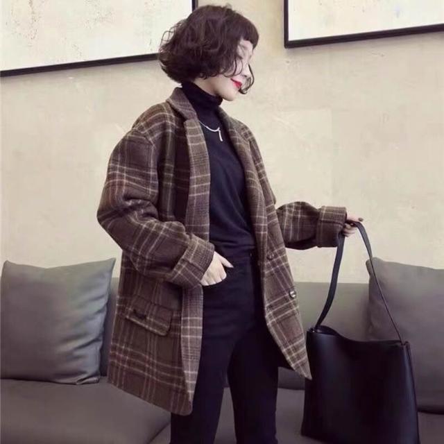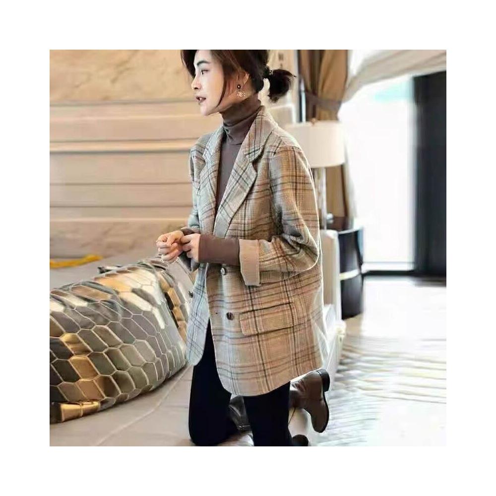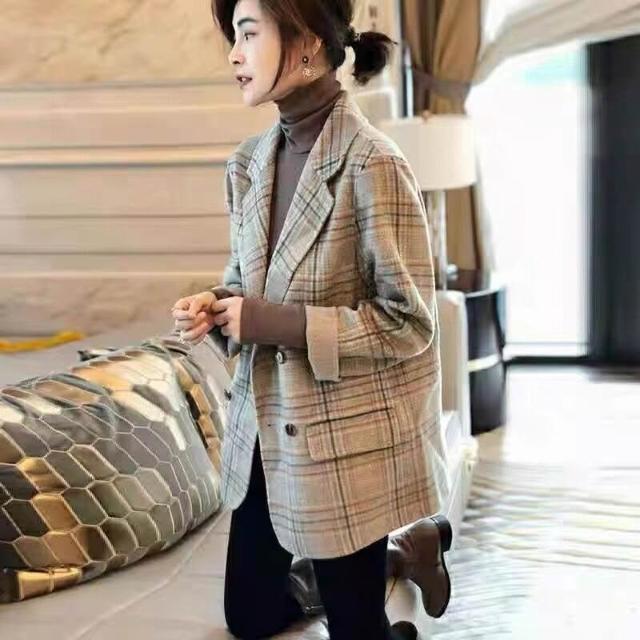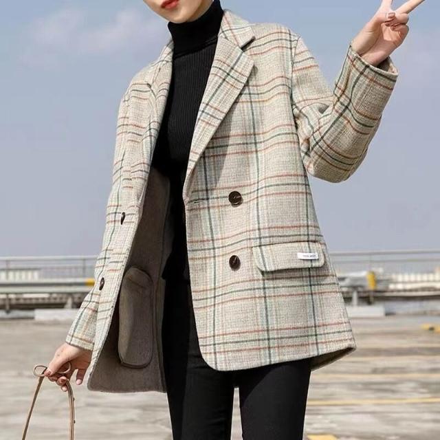 雙面羊毛大衣女短款西裝格子韓版小個子加厚秋冬新款毛呢外套