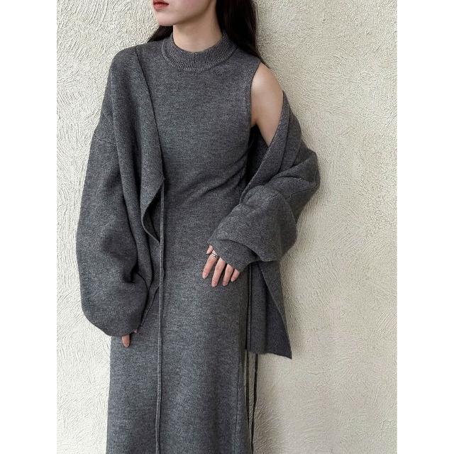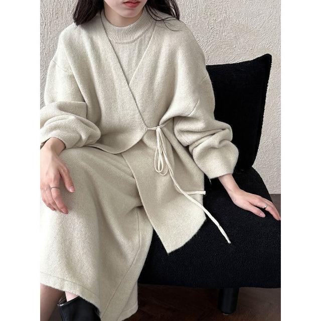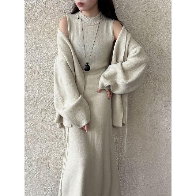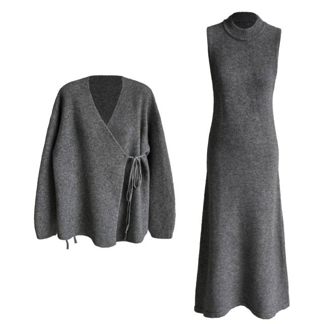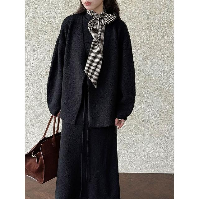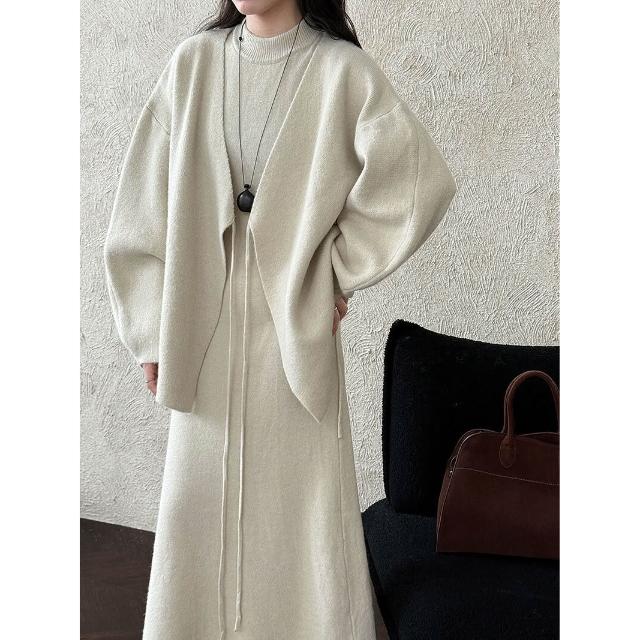 鹿西 法式氣質長款針織無袖連衣裙+慵懶風中開衫女兩件套裝ss855