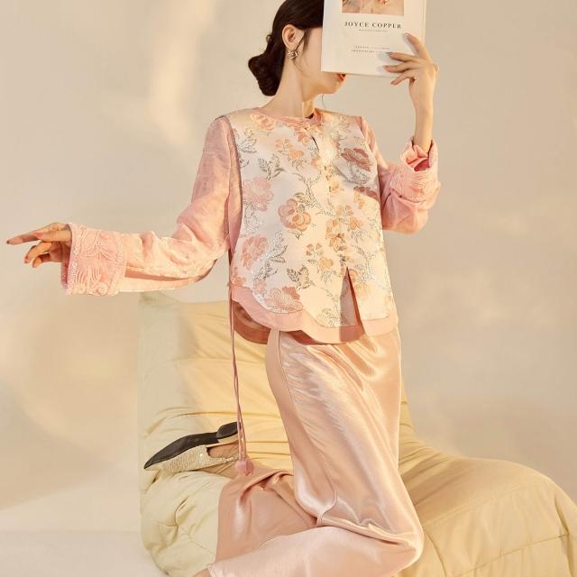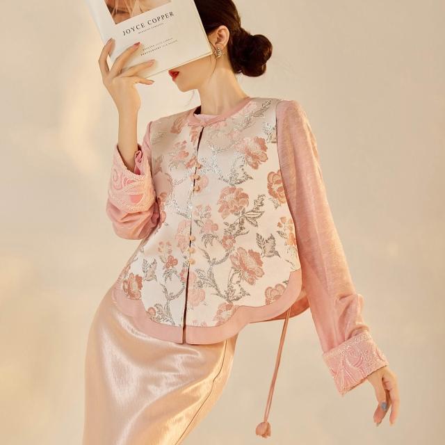 新中式國風流行提花銀絲馬甲早秋新款時尚無袖背心半裙套裝 N8065