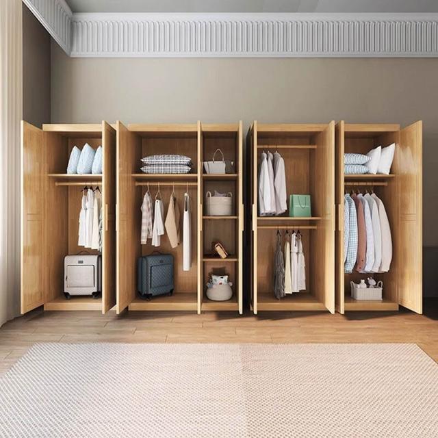 實木衣櫃家用臥室現代簡約收納二三四門對開門衣櫥白色放衣服櫃子