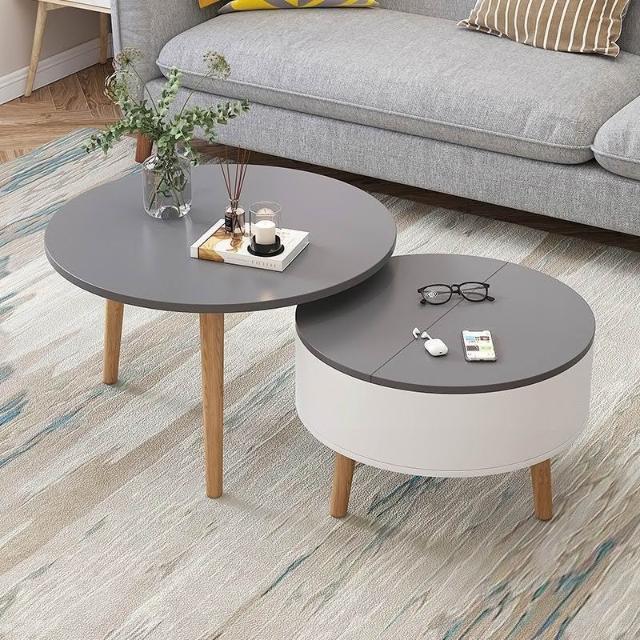 北歐輕奢茶幾 現代簡約網紅實木茶幾 客廳家用小戶型圓形組合茶幾 邊幾 茶几 子母桌
