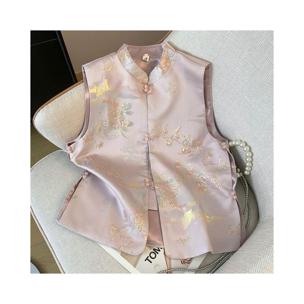新中式馬甲桑蠶絲宋錦上衣立領無袖坎肩背心外穿改良國風女裝馬夾