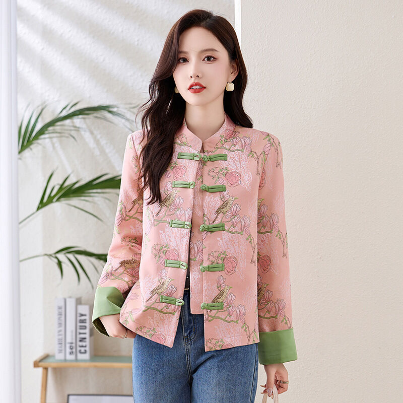 提花緞面新中式外套女春夏薄款2025新款媽媽洋氣高端國風盤扣上衣