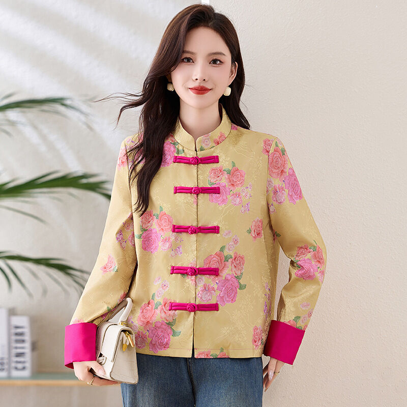 提花緞面新中式外套女春夏薄款2025新款媽媽洋氣高端國風盤扣上衣