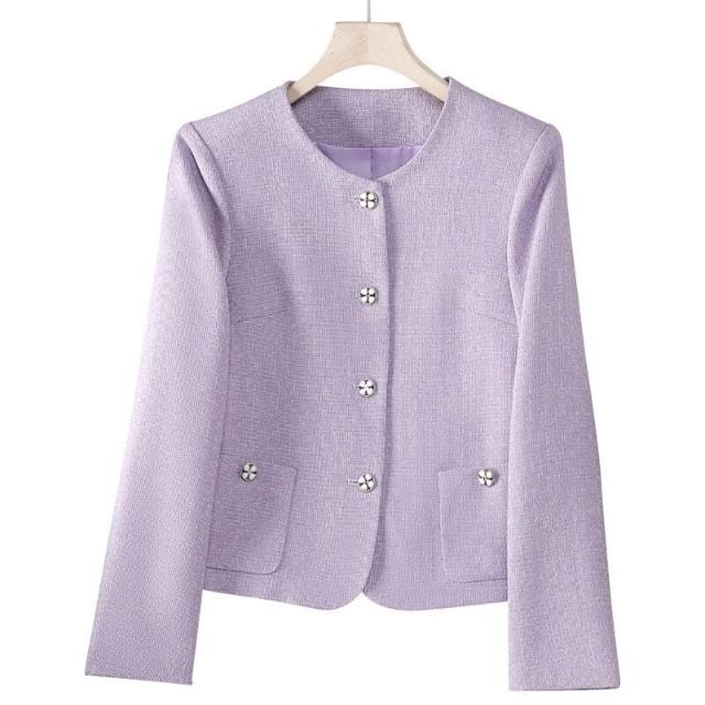 紫色韓系新款長袖西服小香風外套女小個子高級感秋冬西裝外套8533
