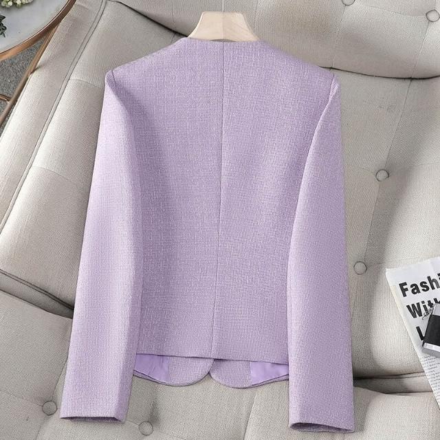紫色韓系新款長袖西服小香風外套女小個子高級感秋冬西裝外套8533