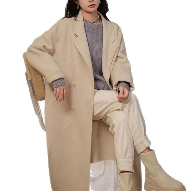 粉色雙面呢絨大衣女中長款2025秋冬季新款小個子過膝韓系毛呢外套