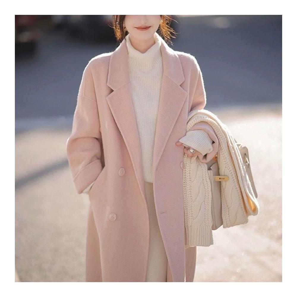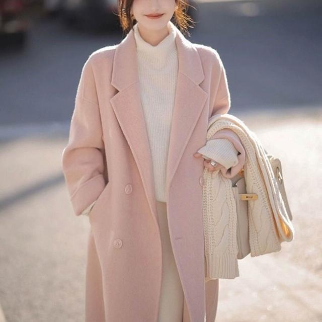 粉色雙面呢絨大衣女中長款2025秋冬季新款小個子過膝韓系毛呢外套