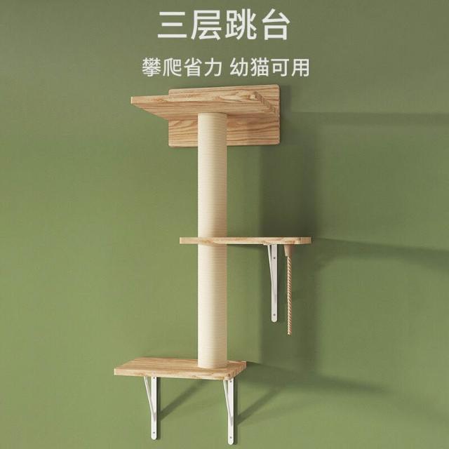 實木壁掛貓爬架上墻家用不占地貓窩貓跳臺劍麻繩木質貓抓柱貓爬墻