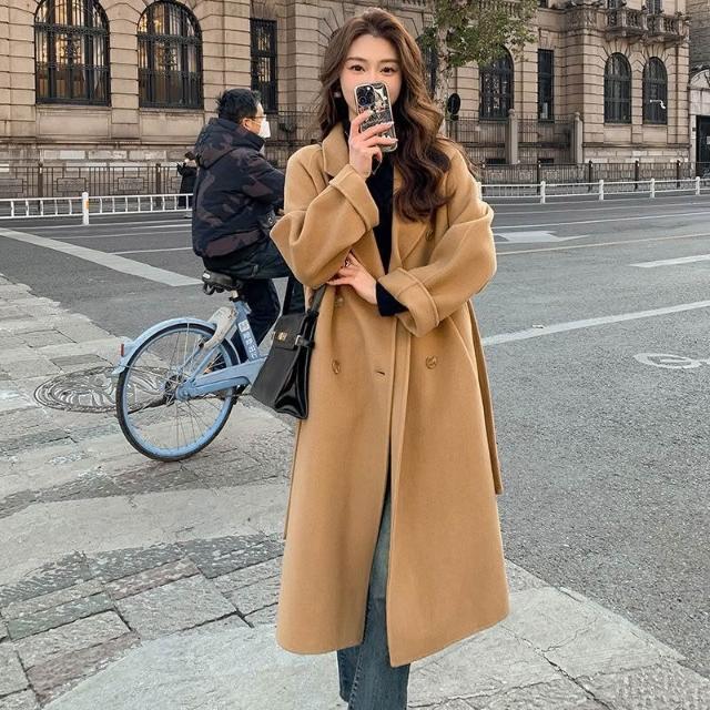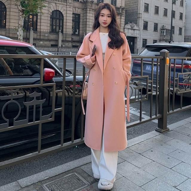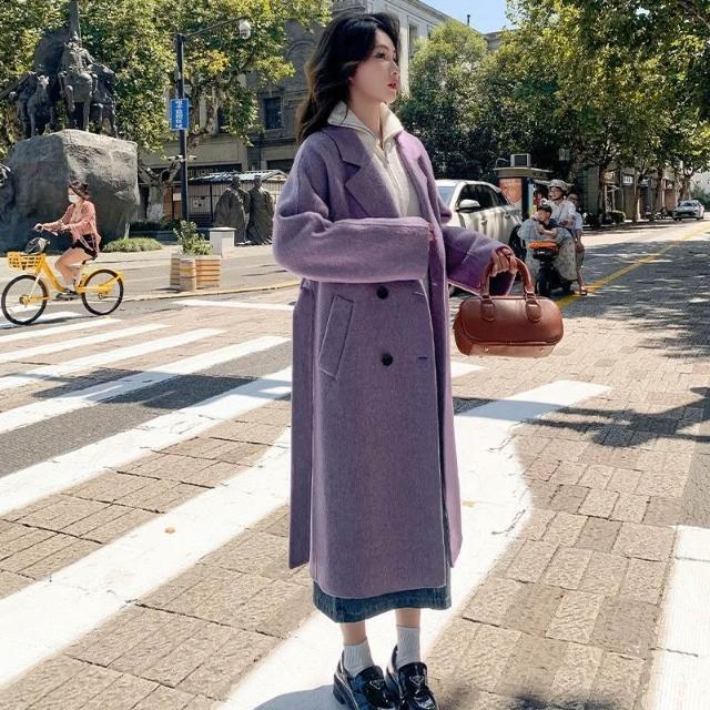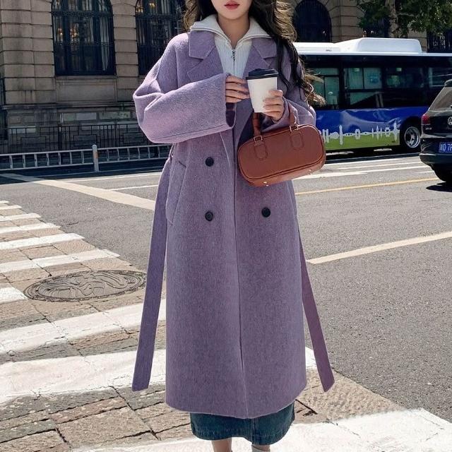 紫色雙面絨大衣女2025秋冬新款韓版中長款寬松時尚過膝毛呢外套