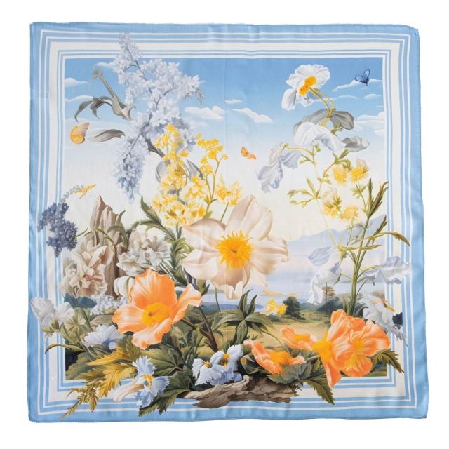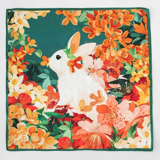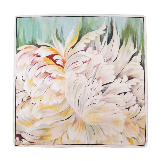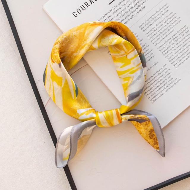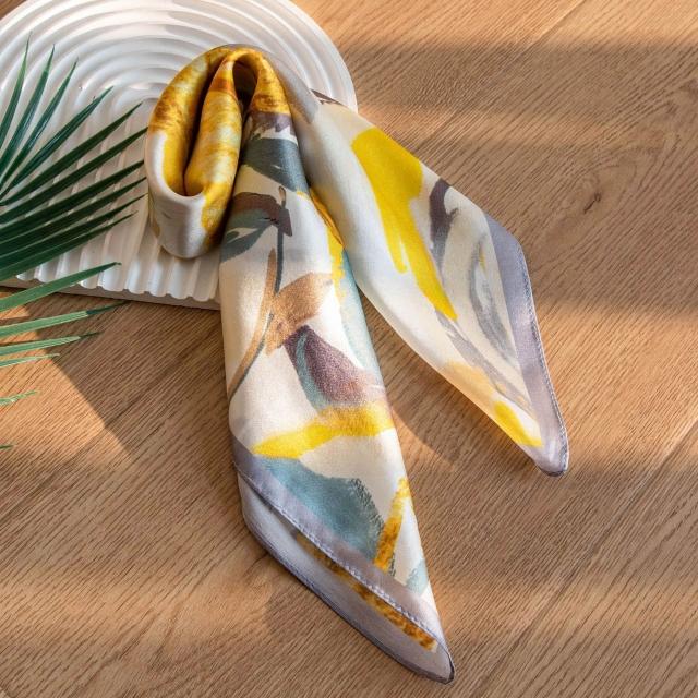 真絲絲巾2025年小方巾新中式素绉緞印花花卉百搭空姐領巾代發圍巾