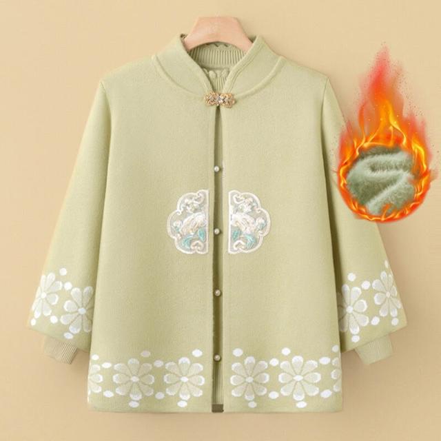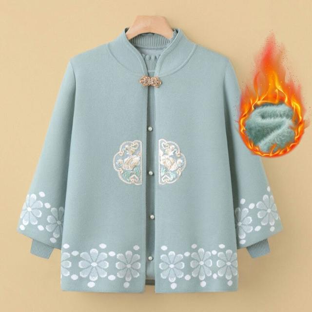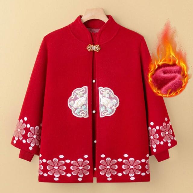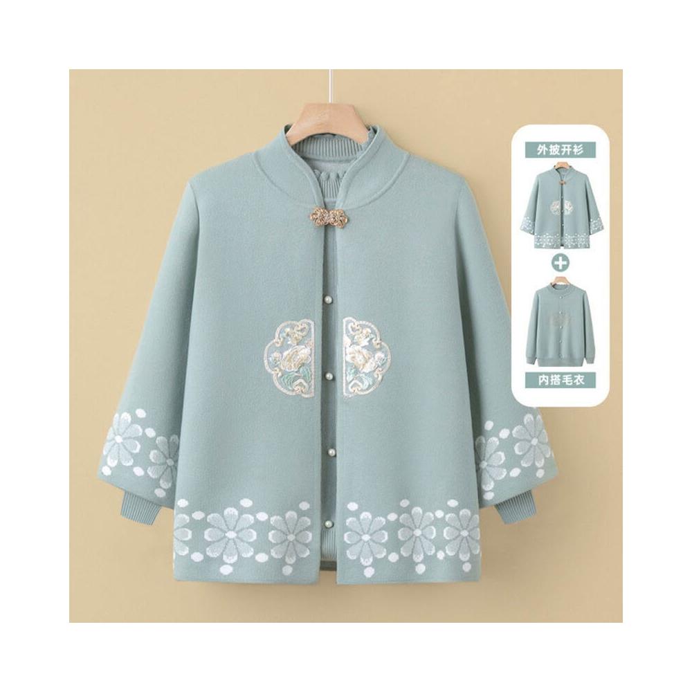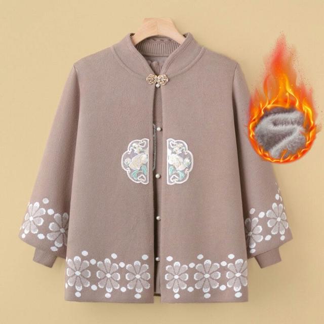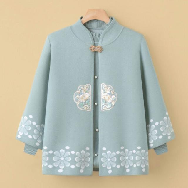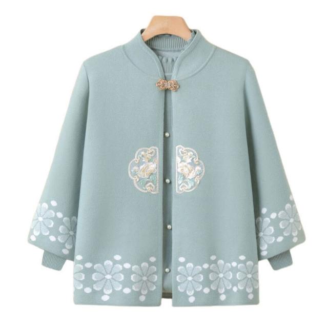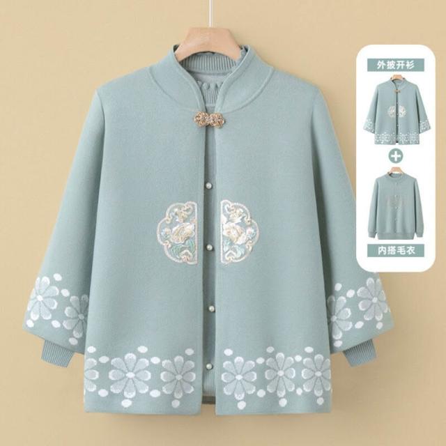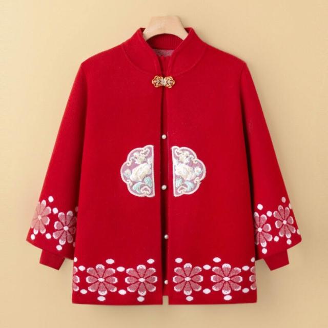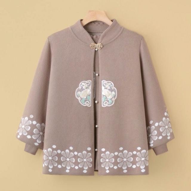 秋冬媽媽毛衣國風新中式女士針織衫中老年女士上衣套裝婆婆衣服