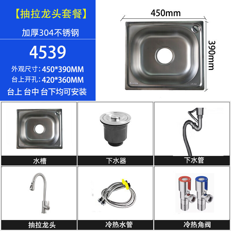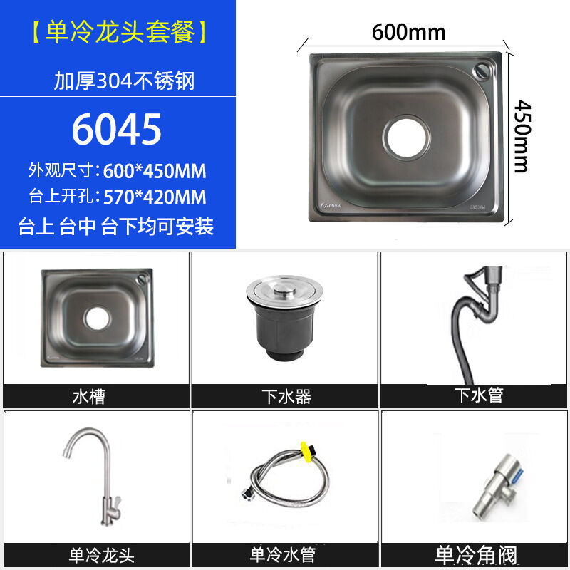 泰淳304不銹鋼單槽洗菜盆廚房水槽 拉絲一體式加厚洗手水池水槽