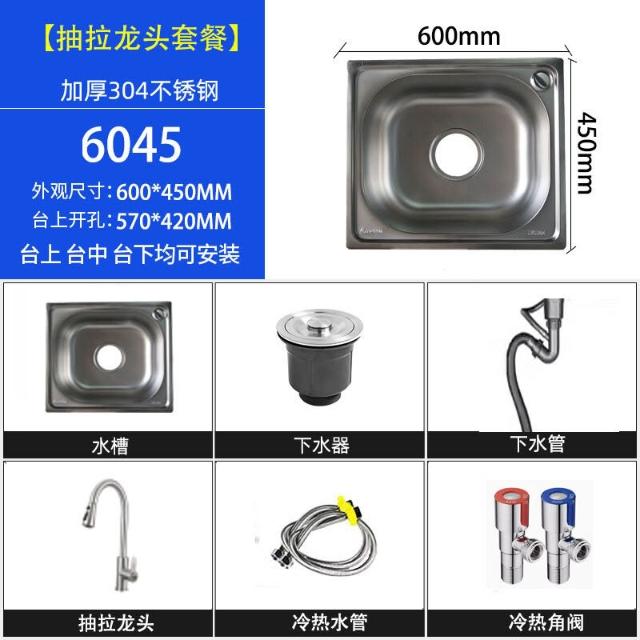 泰淳304不銹鋼單槽洗菜盆廚房水槽 拉絲一體式加厚洗手水池水槽