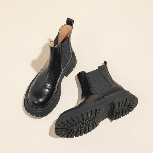 切爾西靴女手抓羊紋一腳蹬復古短靴女秋冬款厚底英倫風馬丁靴單靴