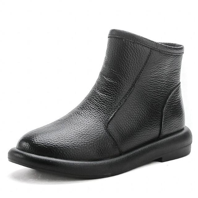 頭層牛皮秋冬季新款低跟馬丁靴復古女鞋真皮靴子女短靴圓頭媽媽鞋