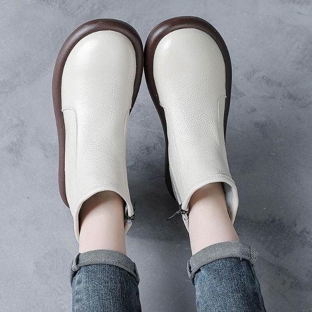 頭層牛皮秋冬季新款低跟馬丁靴復古女鞋真皮靴子女短靴圓頭媽媽鞋