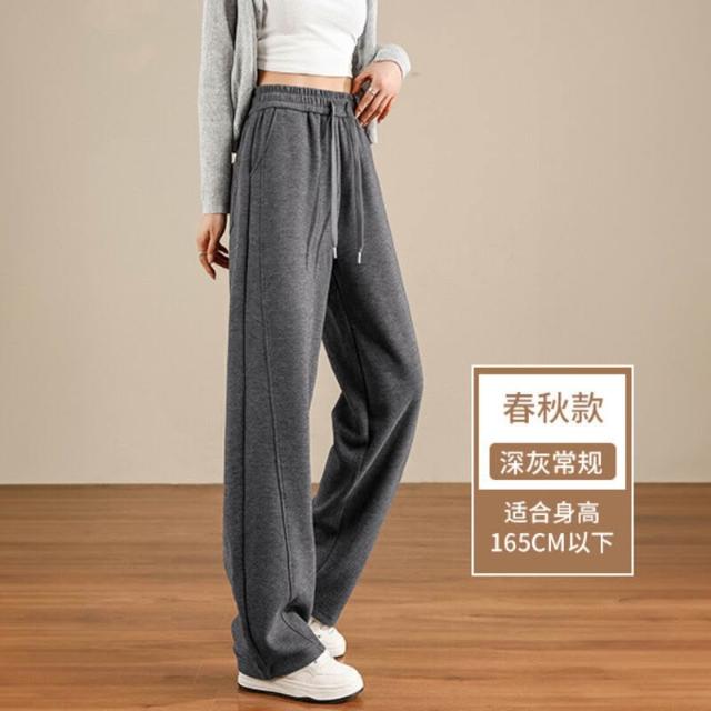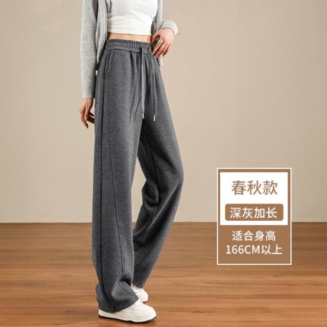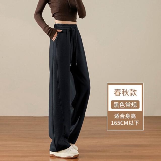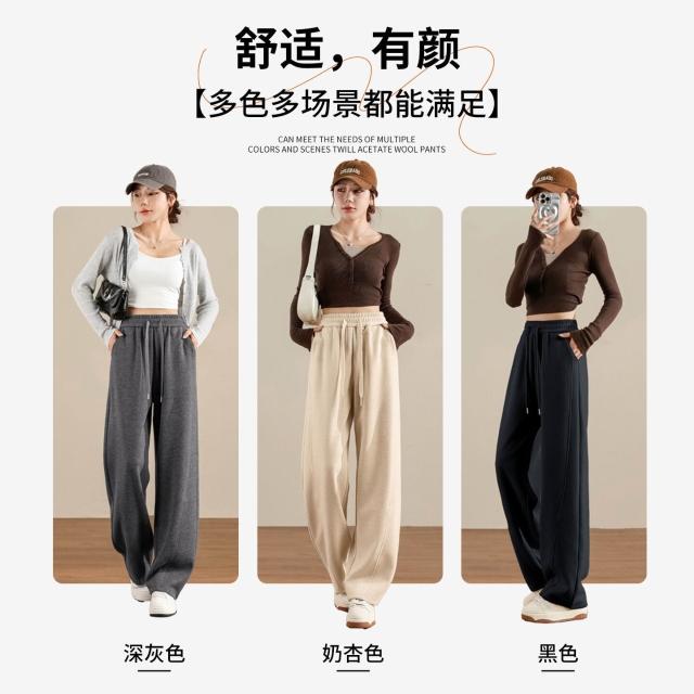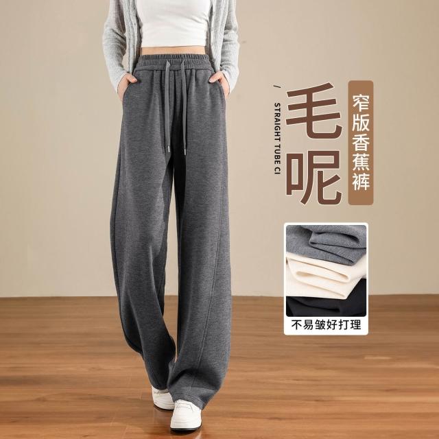 醋酸羊毛闊腿褲子女2025新款春秋季窄版直筒休閑毛呢彎刀香蕉衛褲