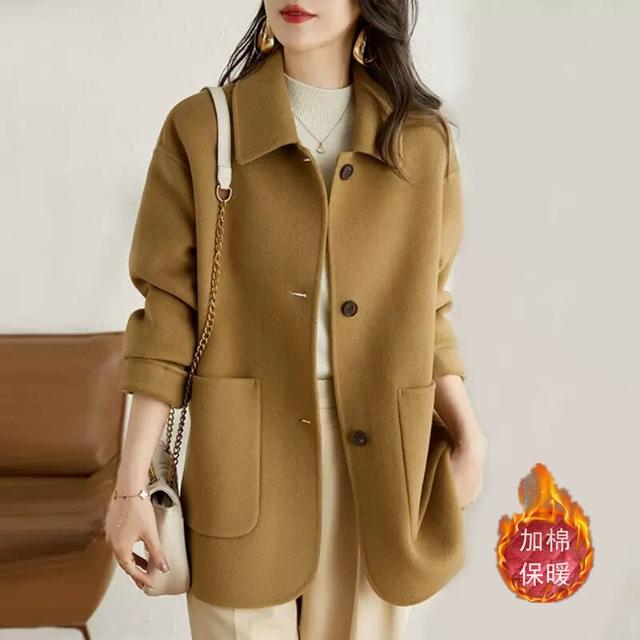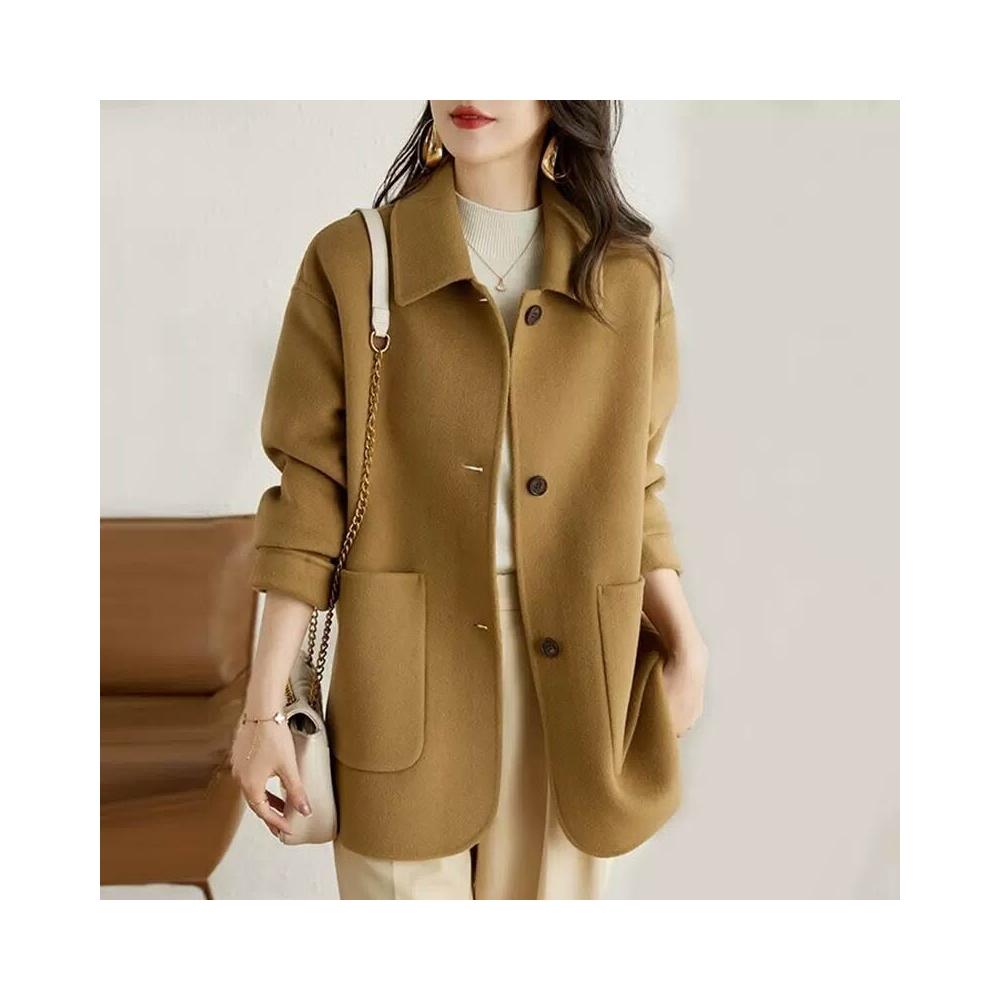 毛呢外套女2023秋冬新款韓版駝色簡約毛呢外套單排扣赫本風大衣女