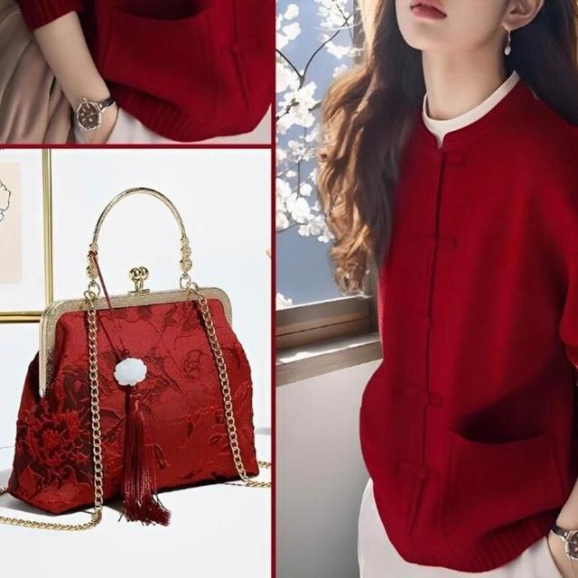 新年戰袍紅色毛衣外套女冬季大碼胖mm新中式國風慵懶針織開衫上衣