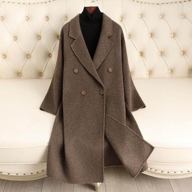 雙面羊毛大衣女中長款2025秋冬新款氣質繭型高級感毛呢外套小個子