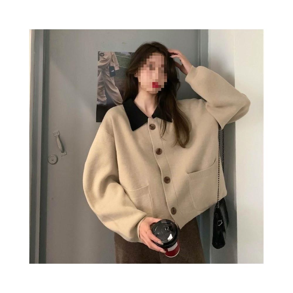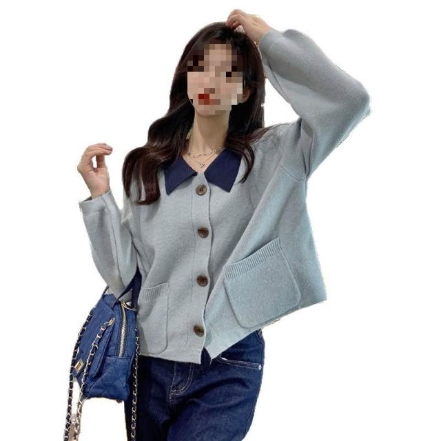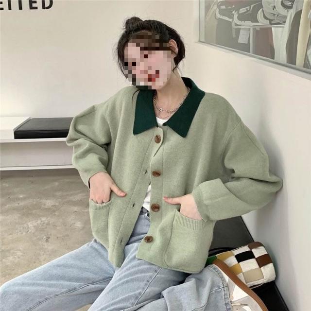 港風翻領針織開衫女上衣2025年秋季新款小香風寬松百搭毛衣女外套