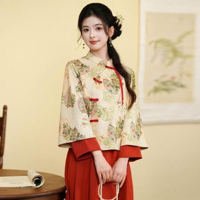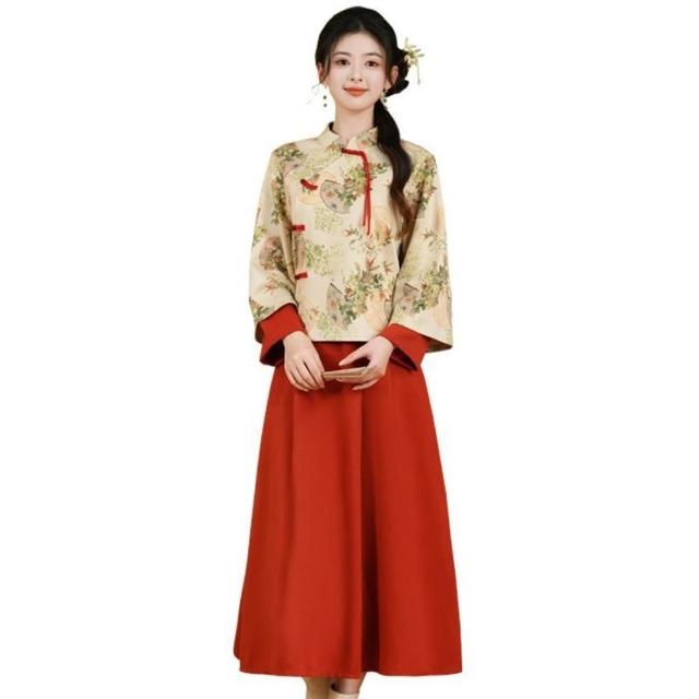 新中式民國改良半身裙旗袍上衣兩件套唐裝漢服女安可拉紅日常套裝