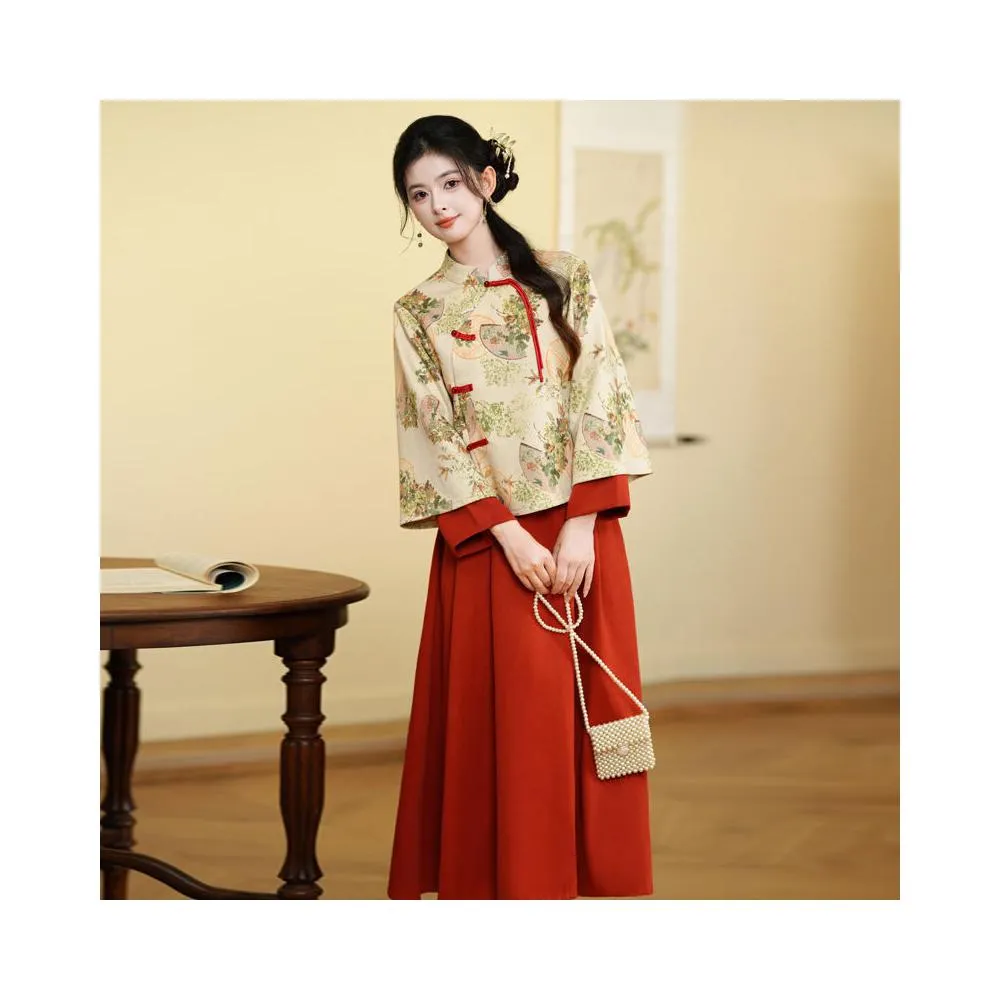 新中式民國改良半身裙旗袍上衣兩件套唐裝漢服女安可拉紅日常套裝