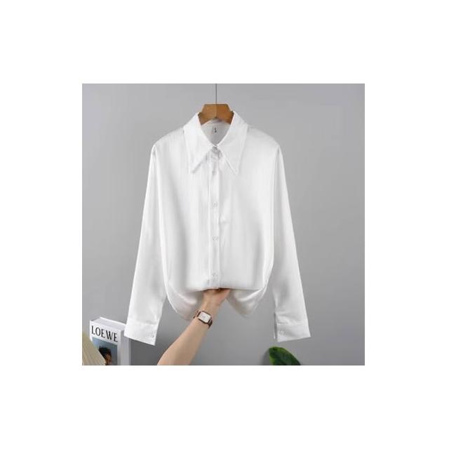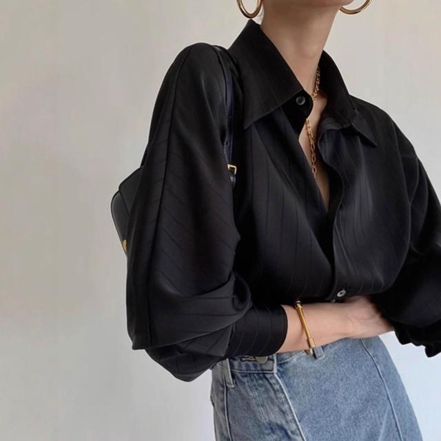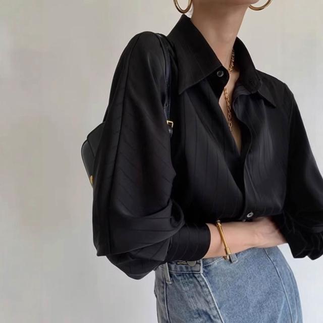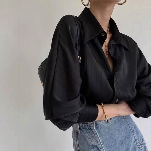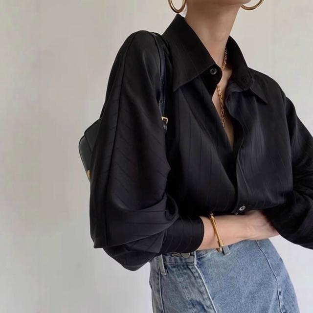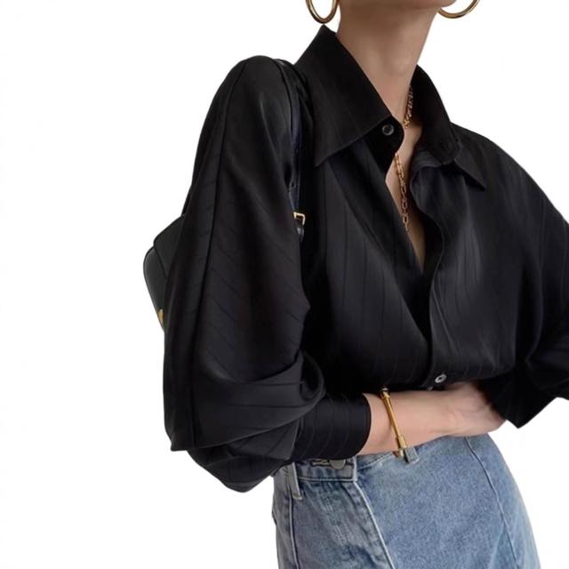 醋酸緞面條紋黑色襯衫女款正肩法式職業垂感襯衣夏季疊穿內搭上衣
