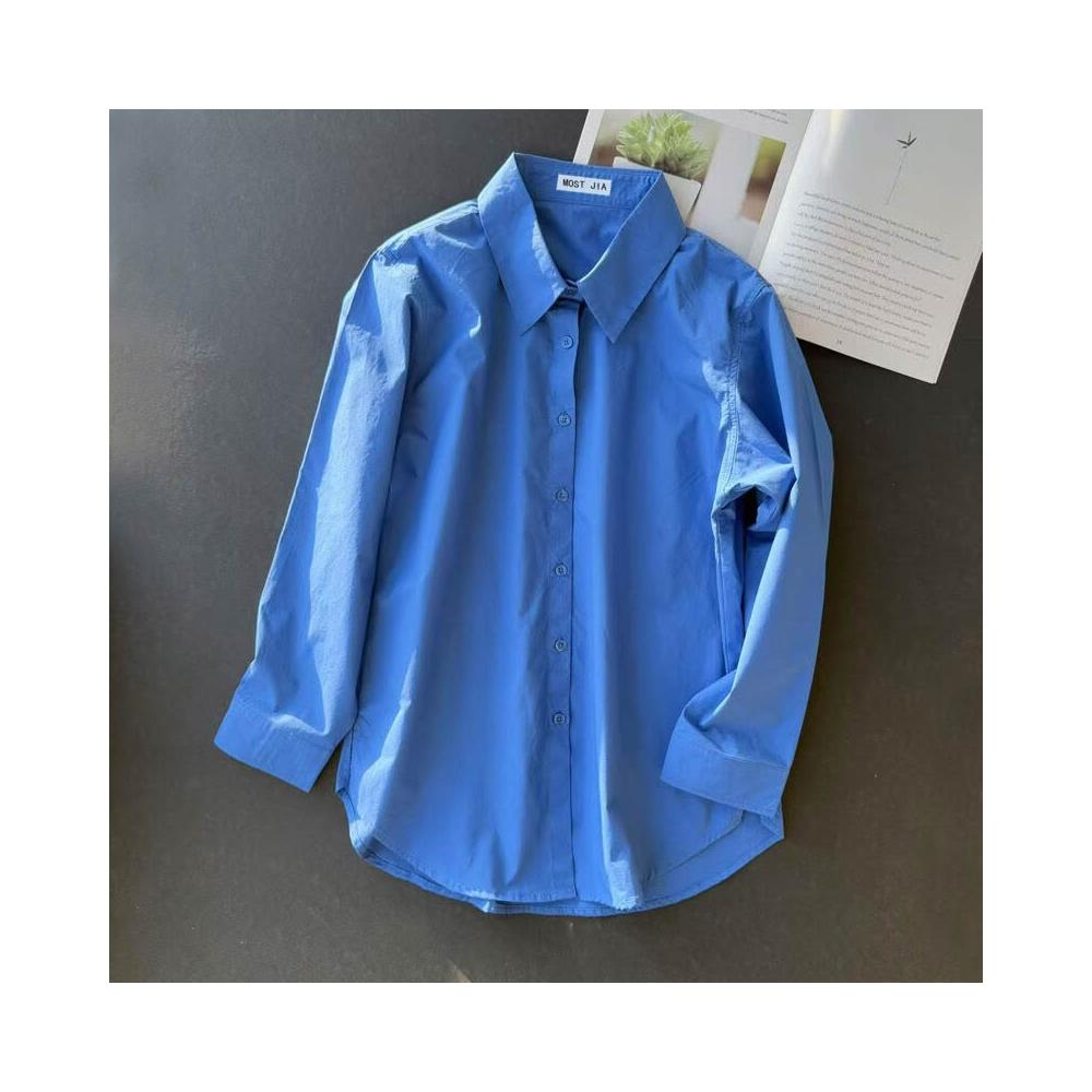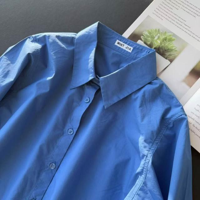 T3克萊因藍棉襯衫寬松版型柔韌挺括長袖襯衣簡約款疊穿男女情侶