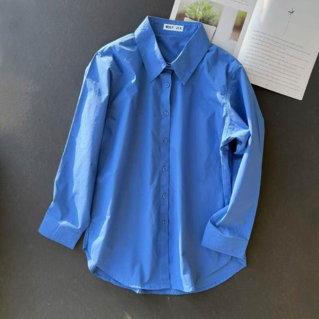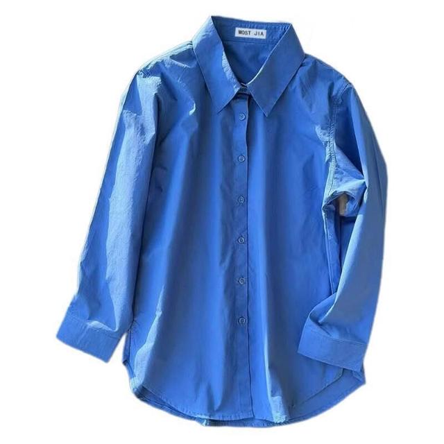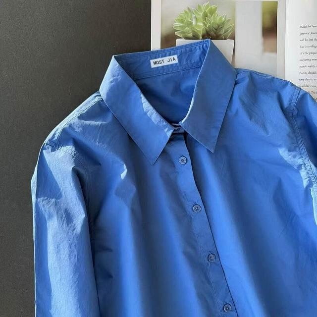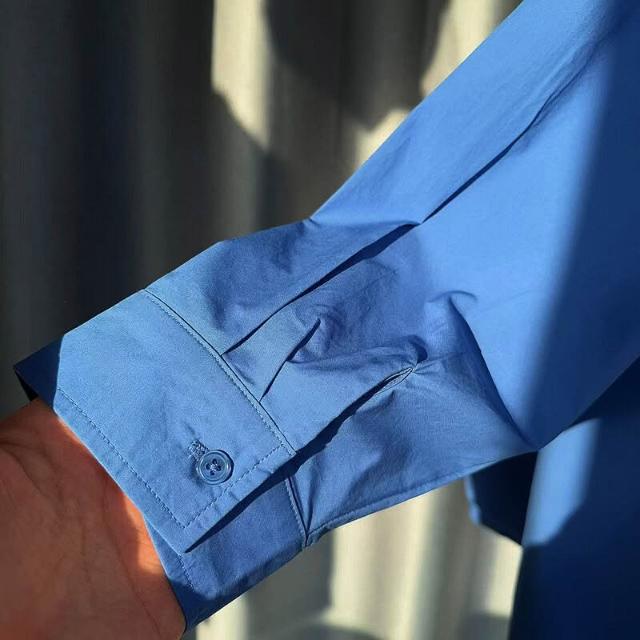 T3克萊因藍棉襯衫寬松版型柔韌挺括長袖襯衣簡約款疊穿男女情侶
