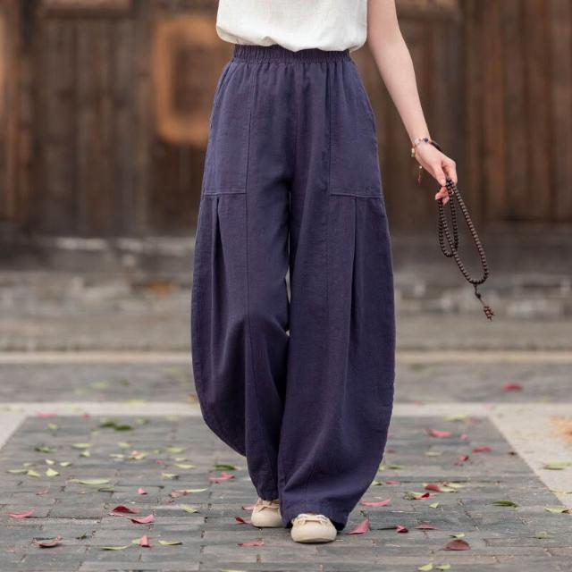 2025秋季新款棉麻燈籠褲原創文藝復古休閑褲棉麻女裝砂洗苎麻長褲