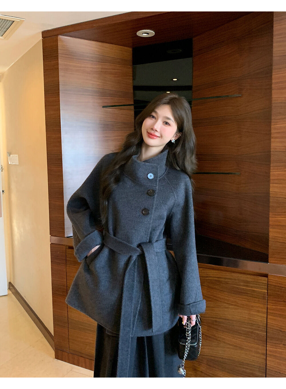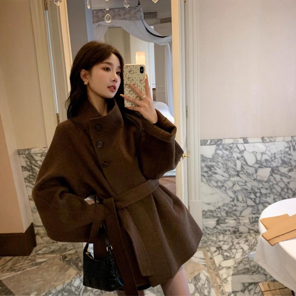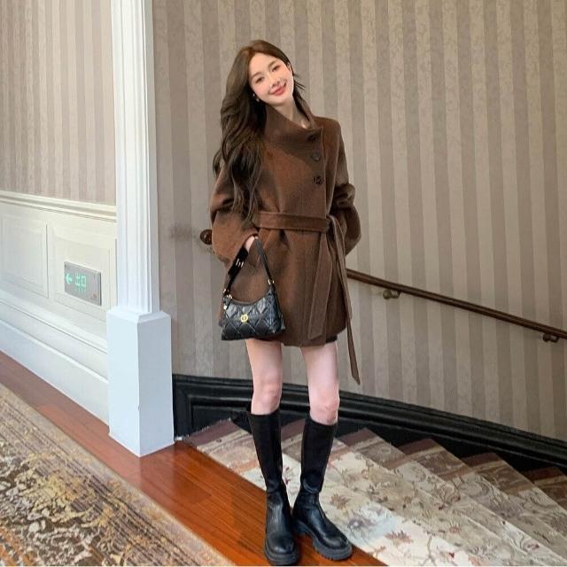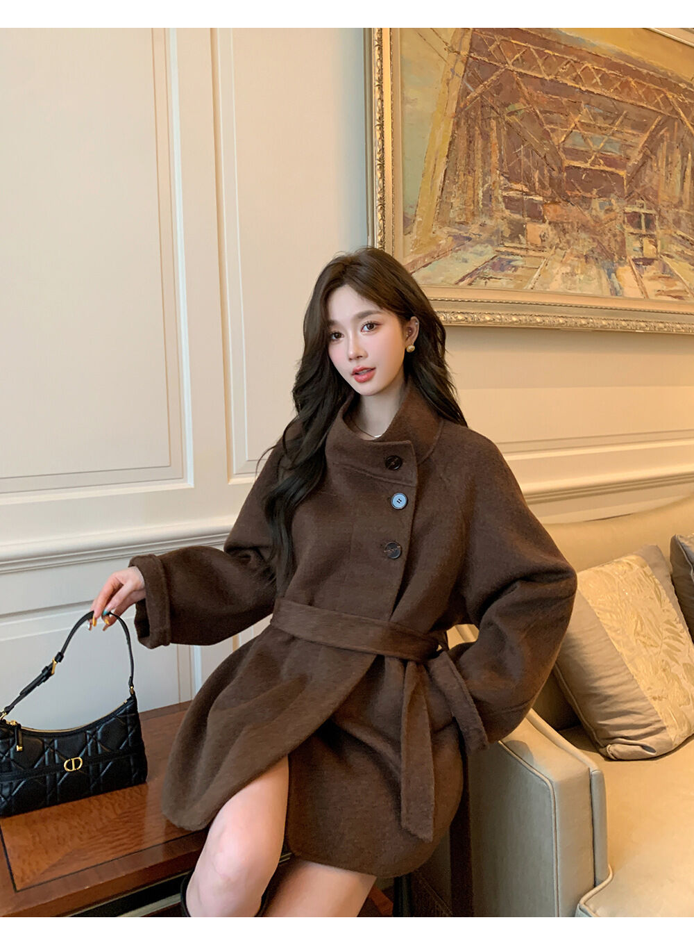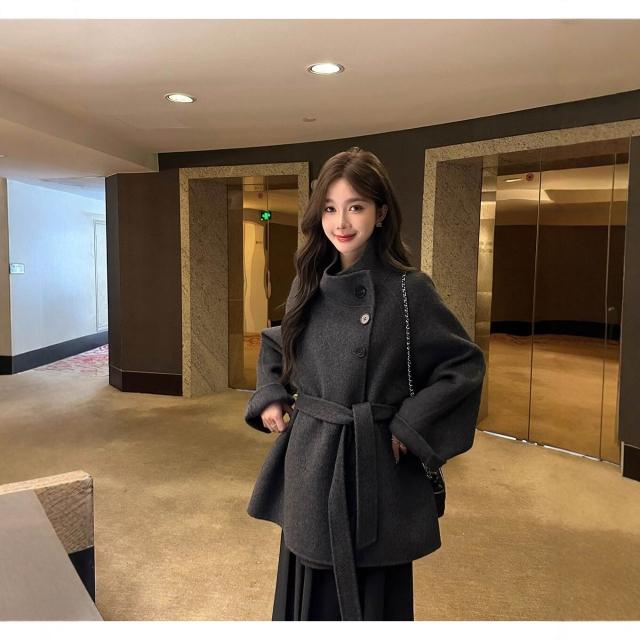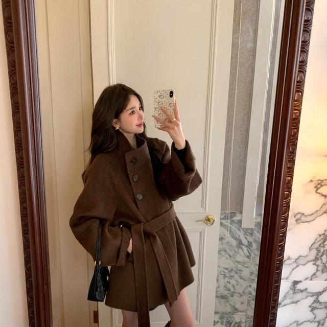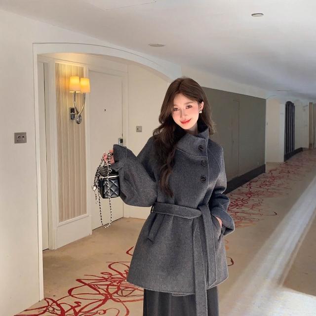 立領駝色雙面羊絨大衣女2025冬季新短款高級感羊毛復古風毛呢外套