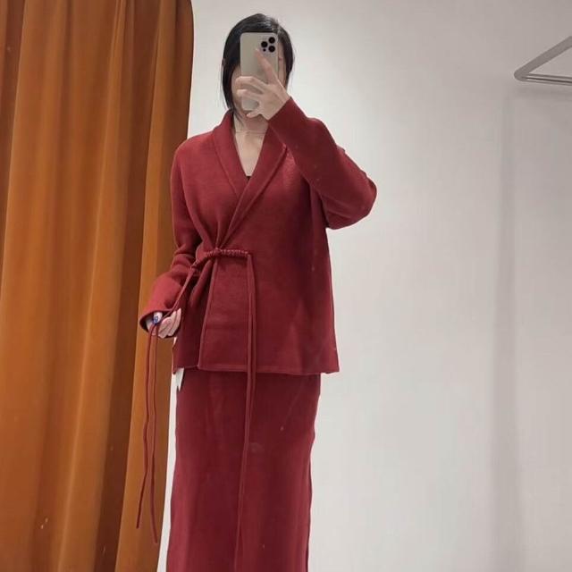 新年新中式針織開衫半身裙富家財閥千金套裝秋裝搭配一整套女裝