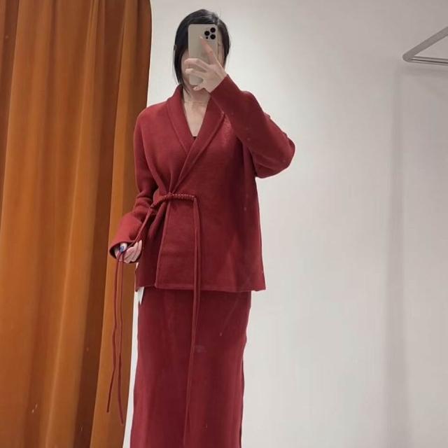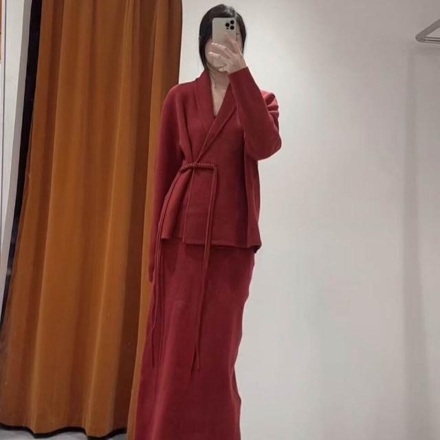 新年新中式針織開衫半身裙富家財閥千金套裝秋裝搭配一整套女裝