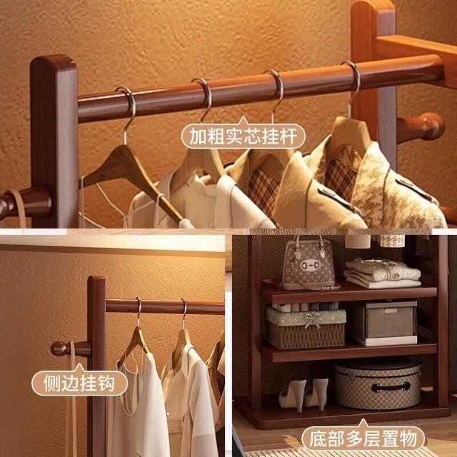 實木落地衣架掛衣家用臥室小戶型床頭衣服儲物空間多層簡約可移動