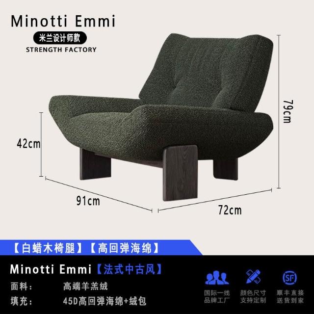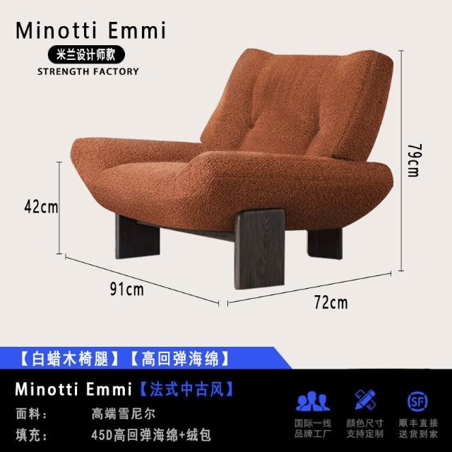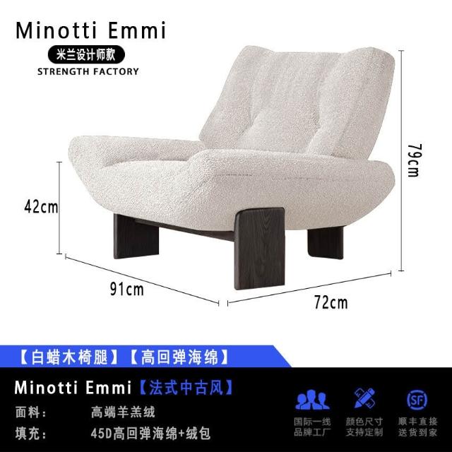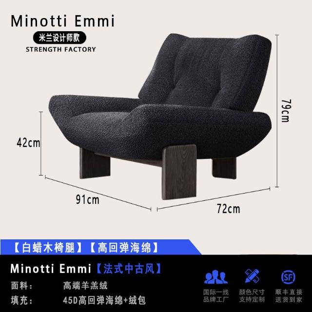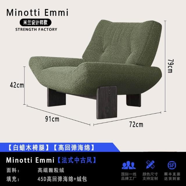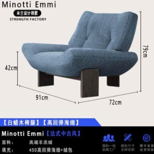 法式復古單人布藝沙發椅設計師款Minotti Emmi白蠟木休閑懶人沙發